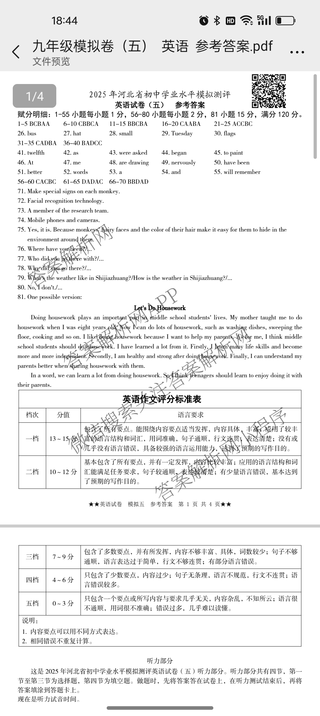 - 2025年(河北省初中学业水平模拟测评)(五)二星英语答案