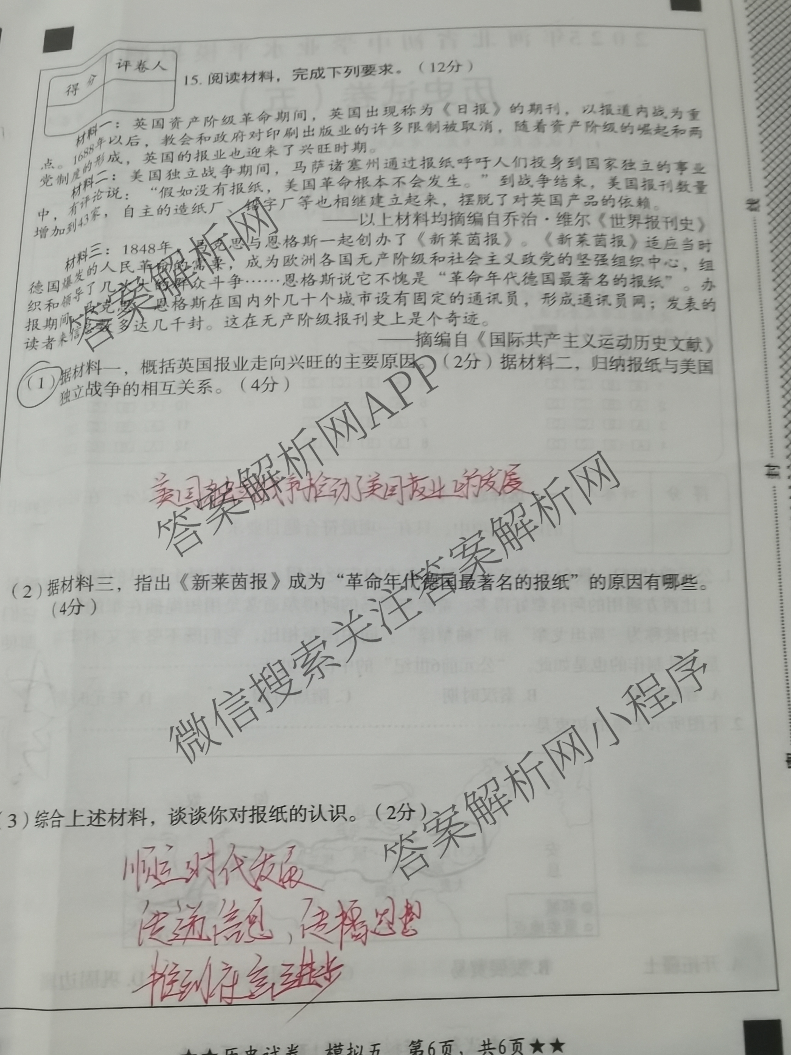 2025年河北省初中学业水平模拟测评(五)二星历史试题,目前分科卷答案网已经汇总了2025年河北省初中学业水平模拟测评(五)二星历史试题的各科答案和试卷,获取更多河北省初中学业水平模拟测评答案解析,请在关注本站。
