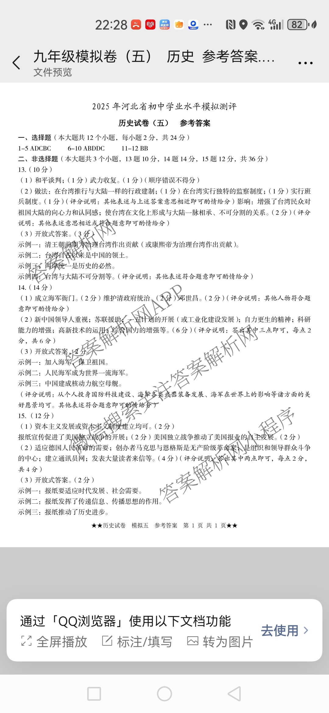 2025年河北省初中学业水平模拟测评(五)二星历史答案,目前分科卷答案网已经汇总了2025年河北省初中学业水平模拟测评(五)二星历史答案的各科答案和试卷,获取更多河北省初中学业水平模拟测评答案解析,请在关注本站。