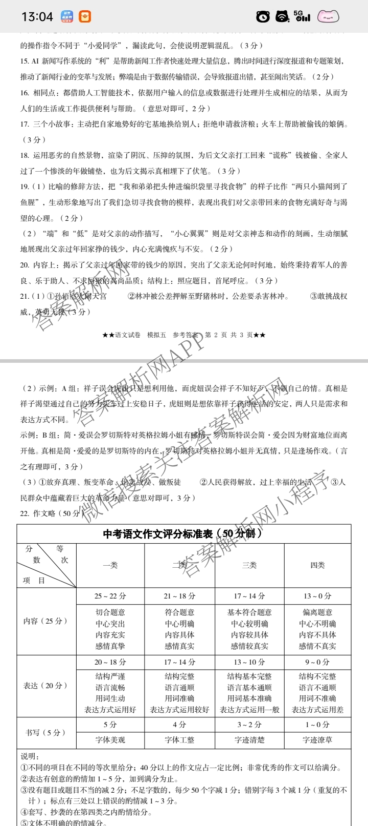 [九年级]2025年(河北省初中学业水平模拟测评)(五)二星语文答案