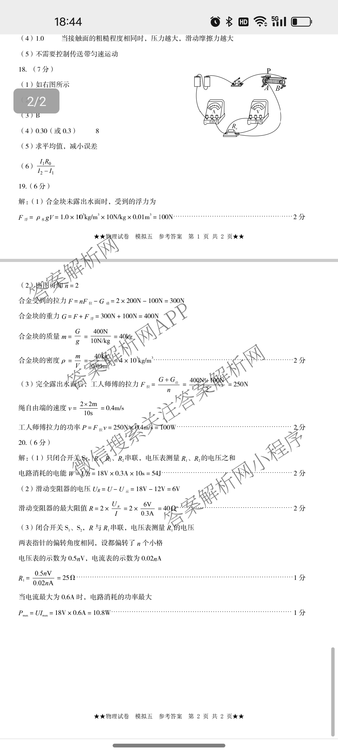 2025年(河北省初中学业水平模拟测评)(五)二星物理答案