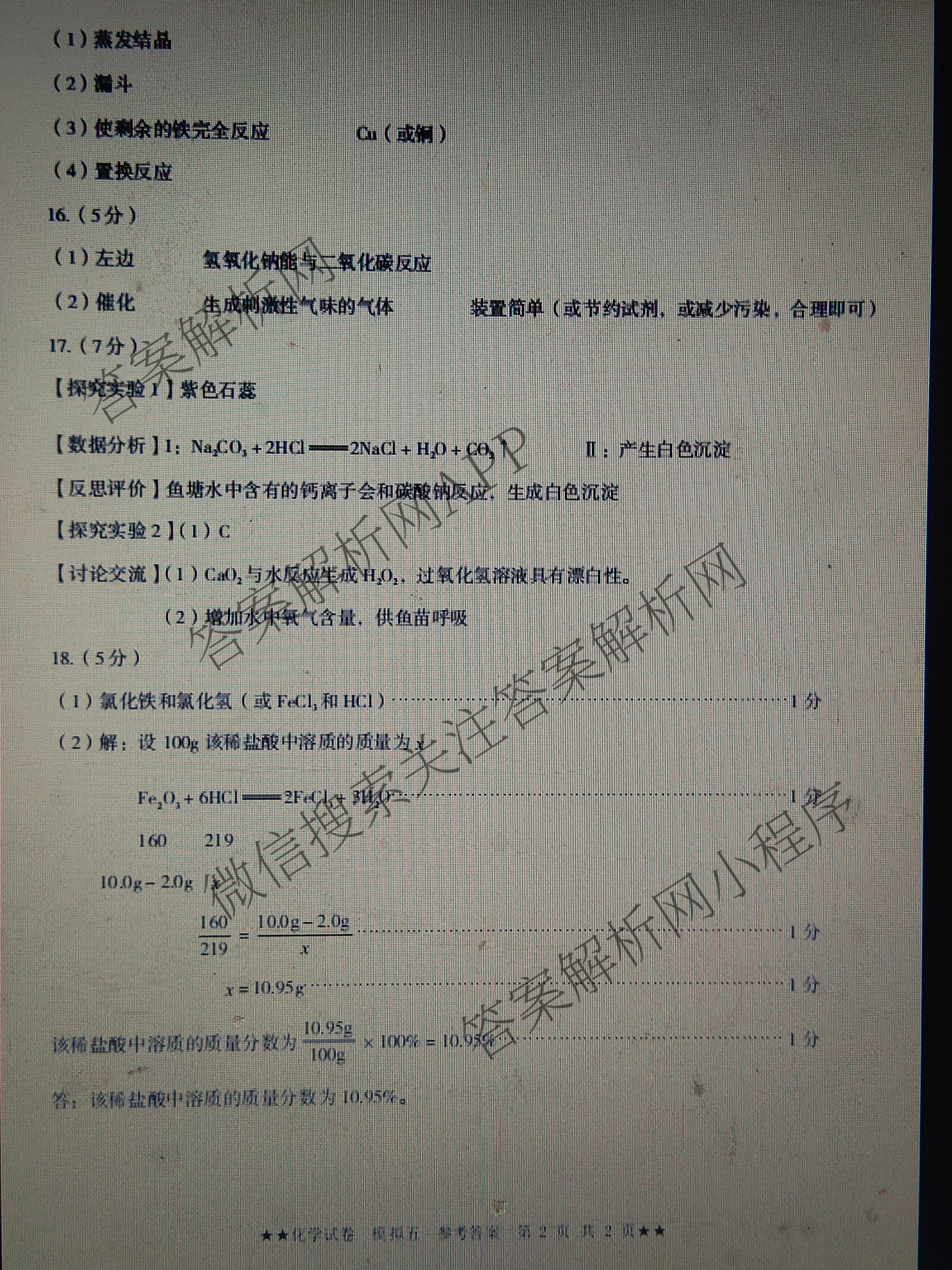 (九年级)2025年(河北省初中学业水平模拟测评)(五)二星化学答案