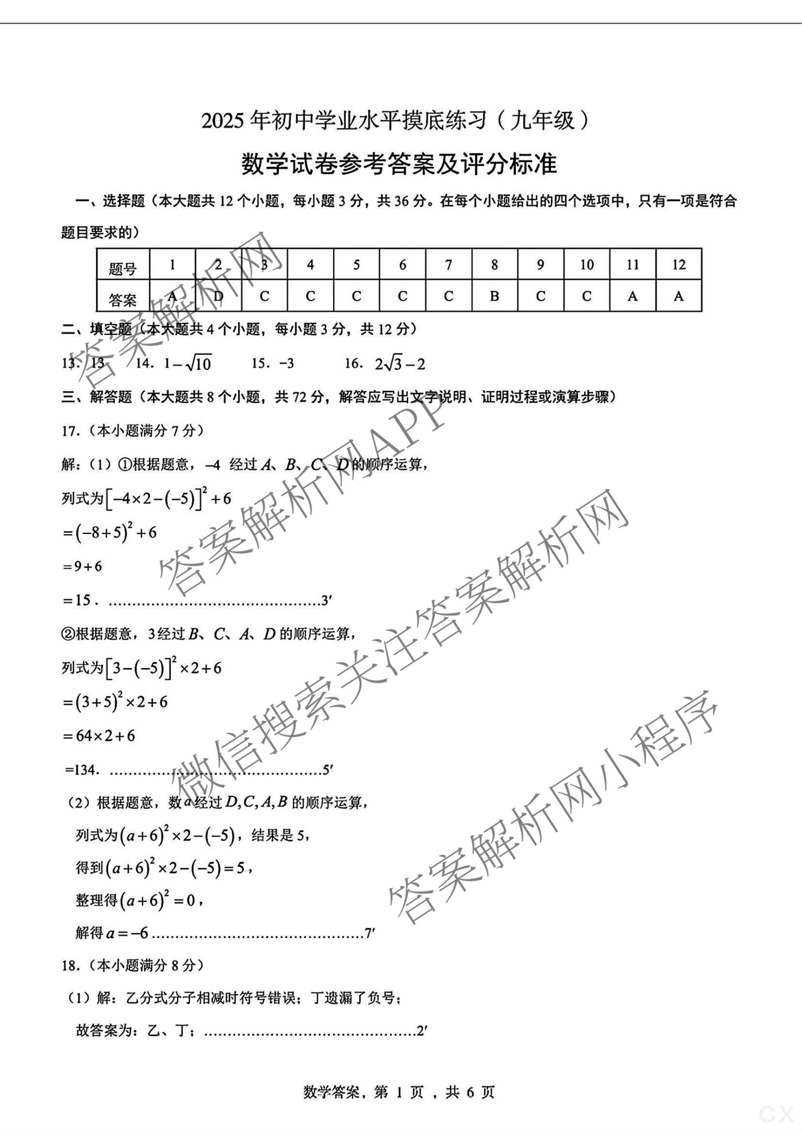 河北省2025年初中学业水平摸底练习(九年级)数学答案,目前分科卷答案网已经汇总了河北省2025年初中学业水平摸底练习(九年级)数学答案的各科答案和试卷,获取更多地方模拟答案解析,请在关注本站。