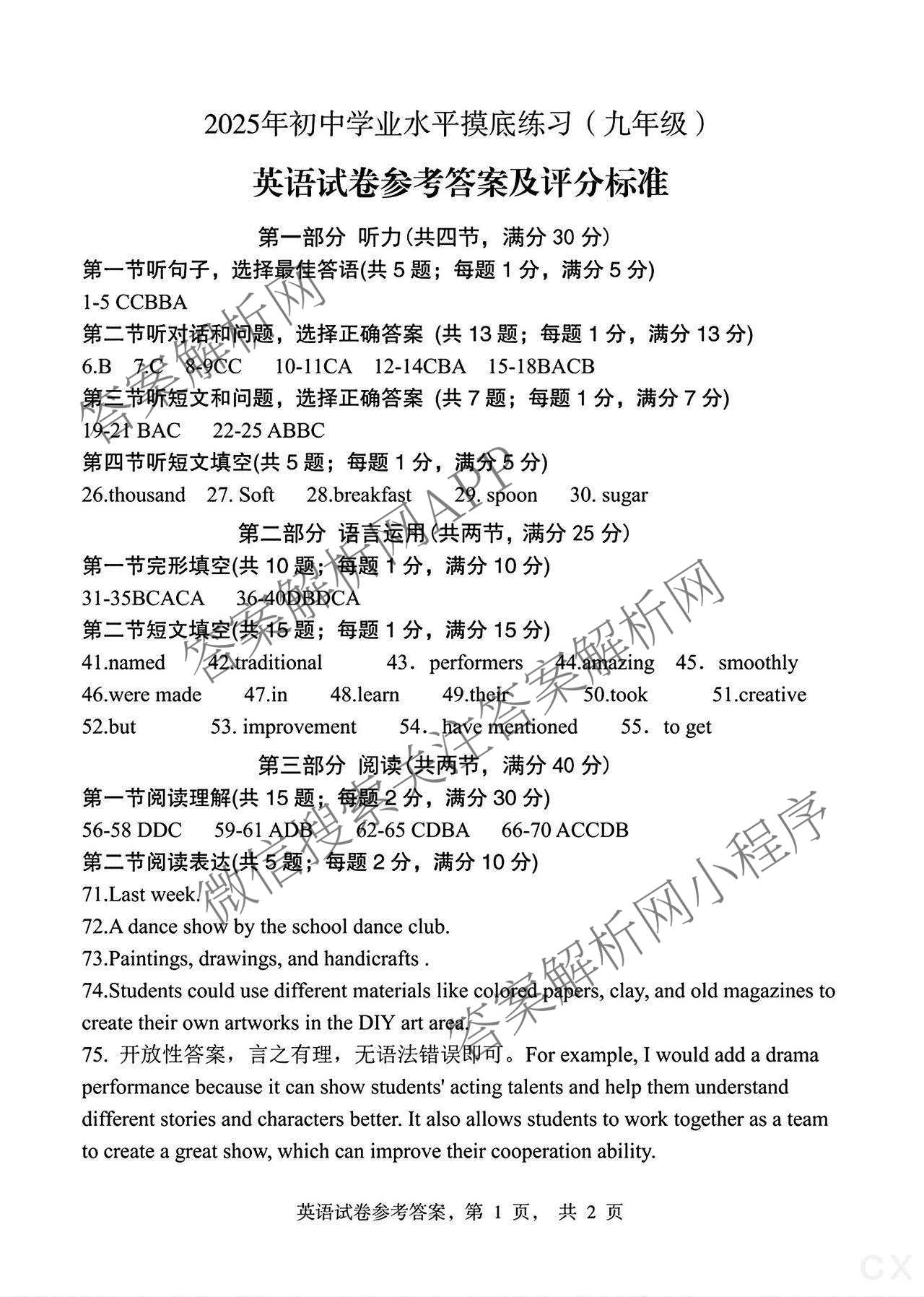 河北省2025年初中学业水平摸底练习(九年级)英语答案,目前分科卷答案网已经汇总了河北省2025年初中学业水平摸底练习(九年级)英语答案的各科答案和试卷,获取更多地方模拟答案解析,请在关注本站。