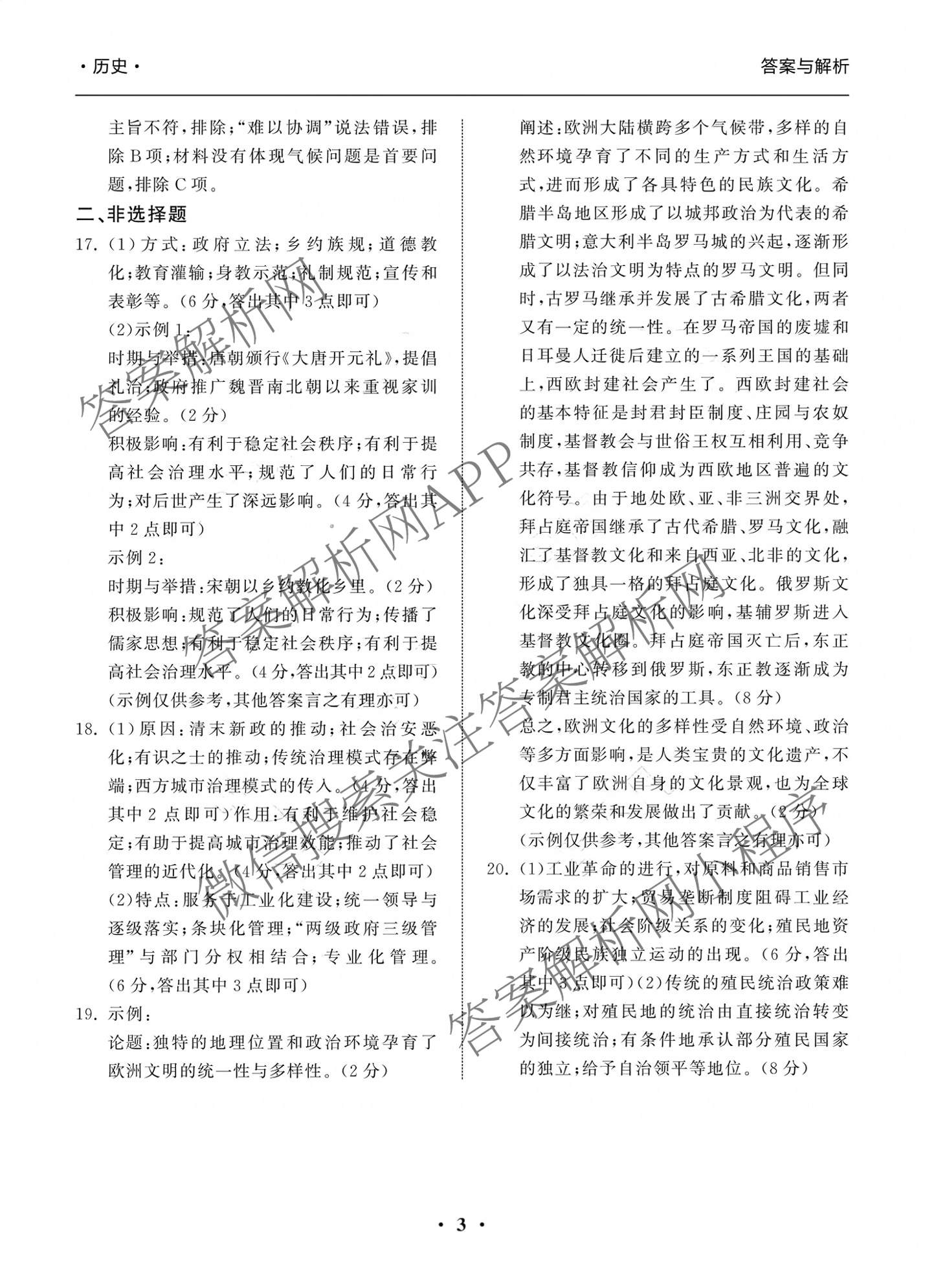 - [高三]天舟高考·(衡中同卷)·2025届全国联合性检测历史答案