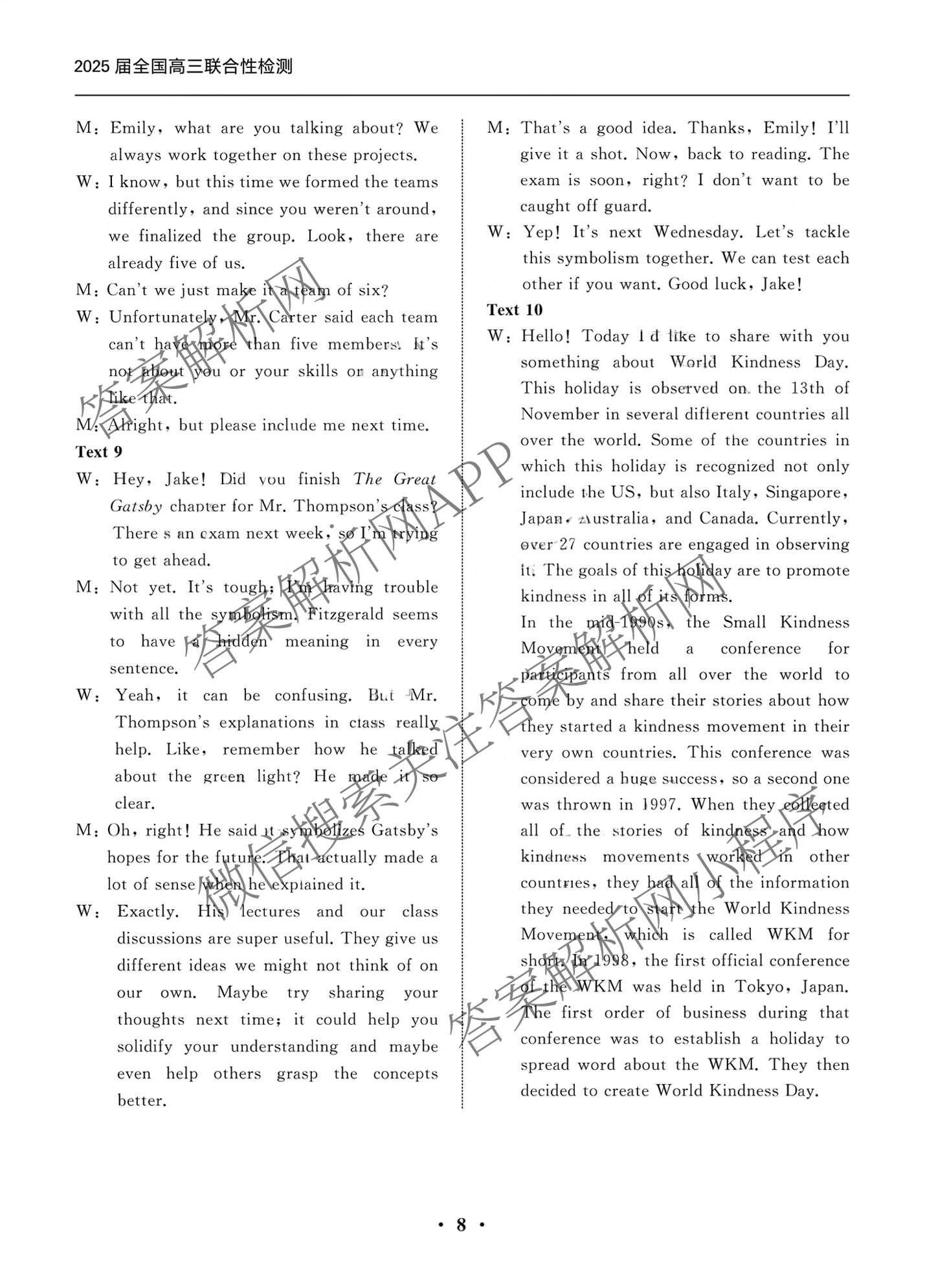 - 2025届(高三)天舟高考·(衡中同卷)·全国联合性检测英语试题