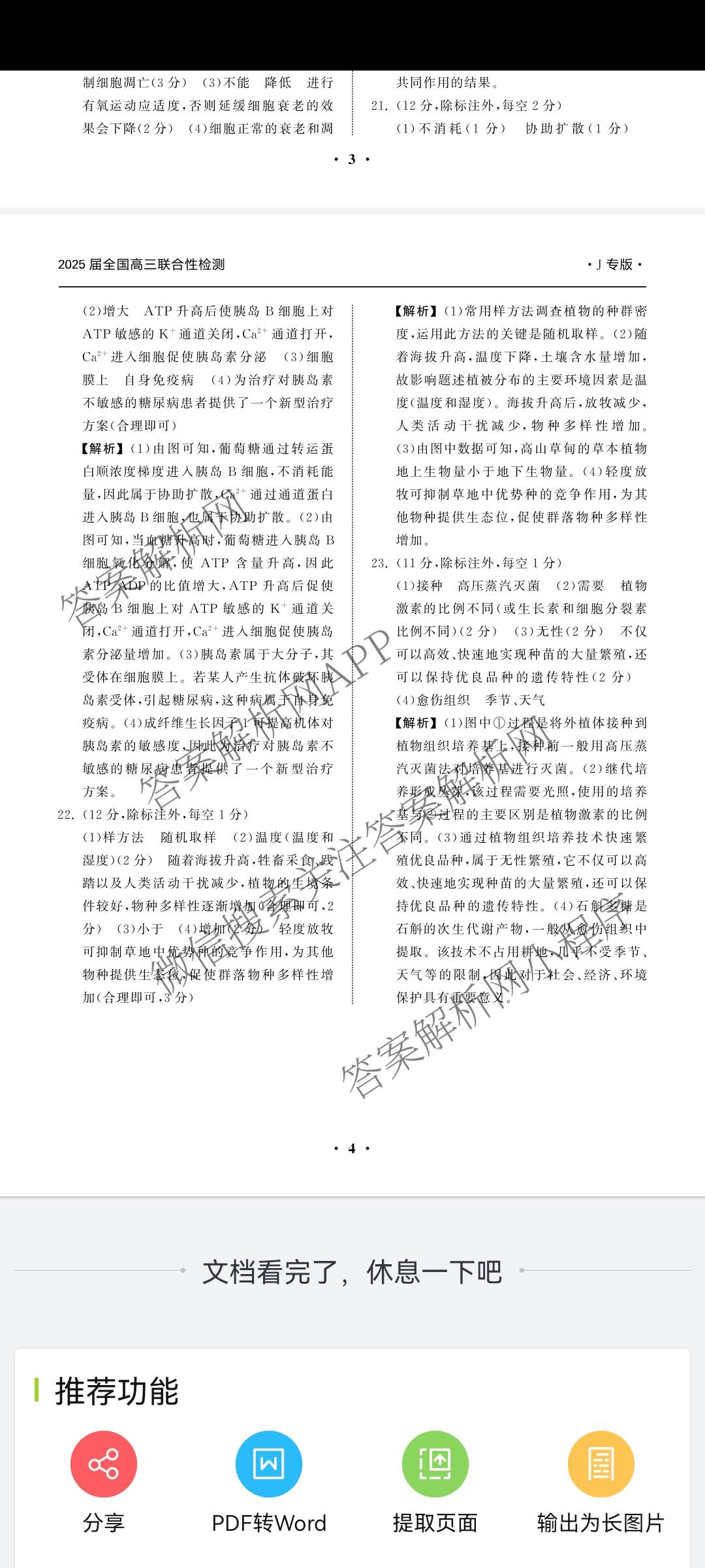 - 2025届(高三)天舟高考衡中同卷全国联合性检测生物(J专版)答案