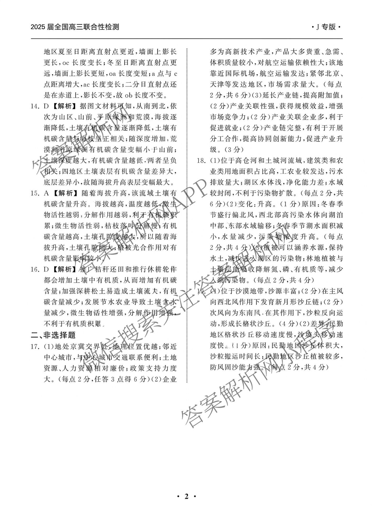 - 2025届天舟高考·[衡中同卷]·全国高三联合性检测地理(L专版)答案