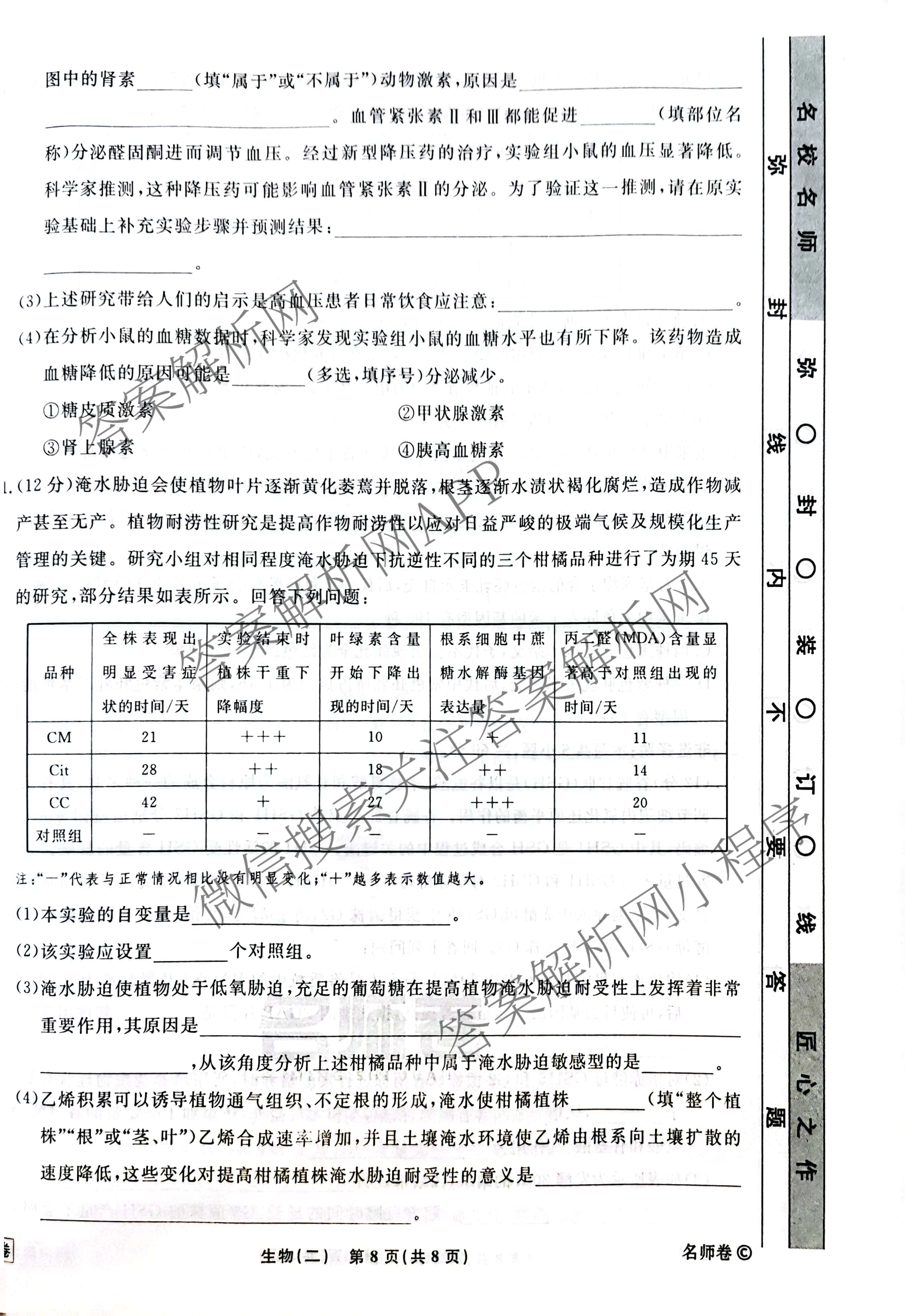衡水名师卷·高考模拟调研卷 2025年普通高等学校招生全国统一考试模拟(二)2生物(空心圆)试题,目前分科卷答案网已经汇总了衡水名师卷·高考模拟调研卷 2025年普通高等学校招生全国统一考试模拟(二)2生物(空心圆)试题的各科答案和试卷,获取更多衡水名师卷答案解析,请在关注本站。
