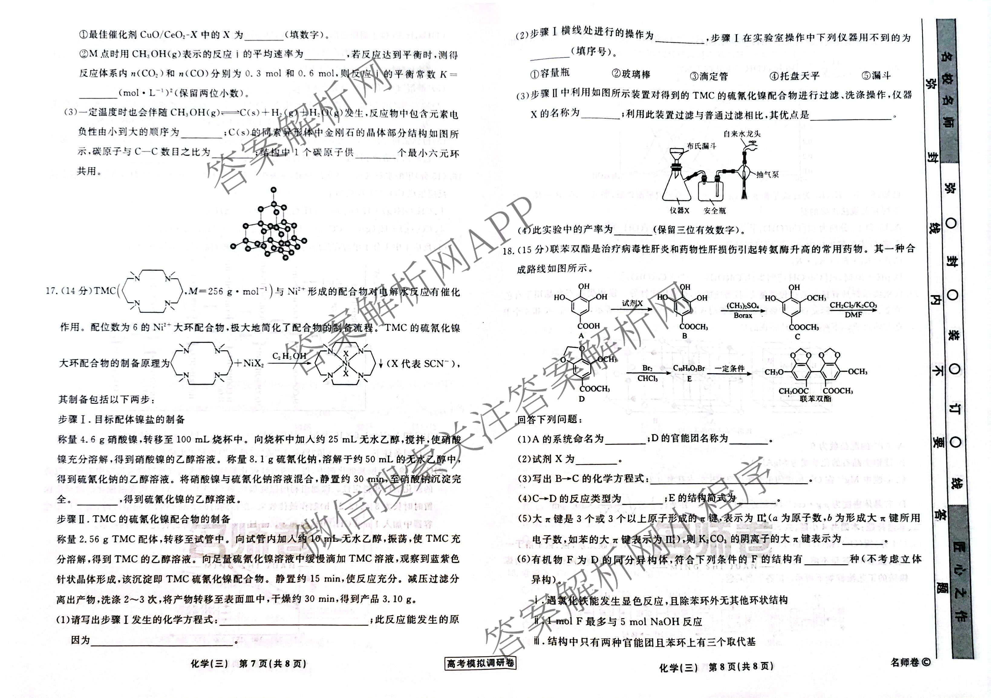 衡水名师卷·高考模拟调研卷 2025年普通高等学校招生全国统一考试模拟(三)3化学(空心圆)试题,目前分科卷答案网已经汇总了衡水名师卷·高考模拟调研卷 2025年普通高等学校招生全国统一考试模拟(三)3化学(空心圆)试题的各科答案和试卷,获取更多衡水名师卷答案解析,请在关注本站。