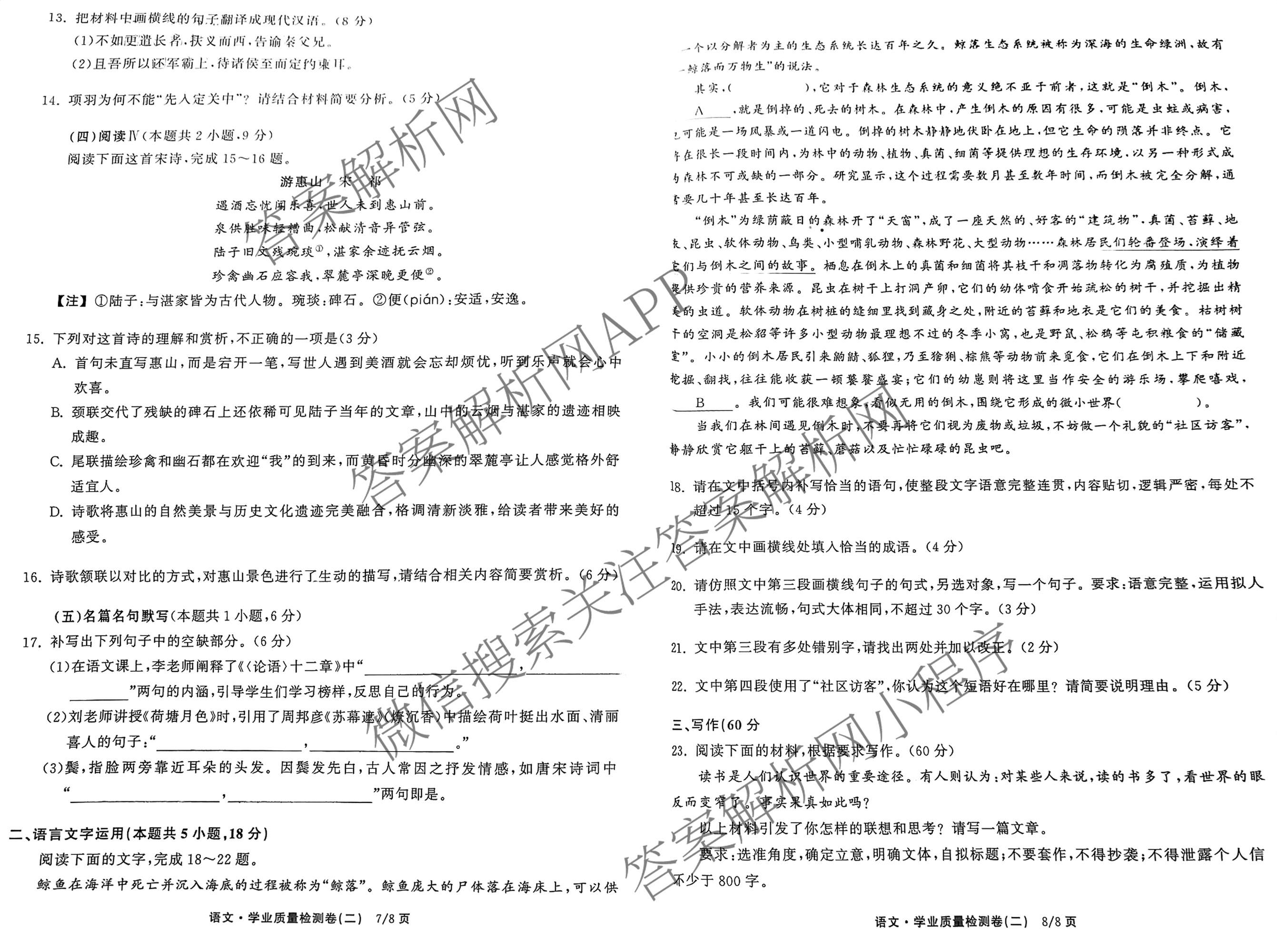 天舟高考衡中同卷·2024-2025学年度高三学业质量检测卷(二)2语文试题,目前分科卷答案网已经汇总了天舟高考衡中同卷·2024-2025学年度高三学业质量检测卷(二)2语文试题的各科答案和试卷,获取更多衡中同卷答案解析,请在关注本站。