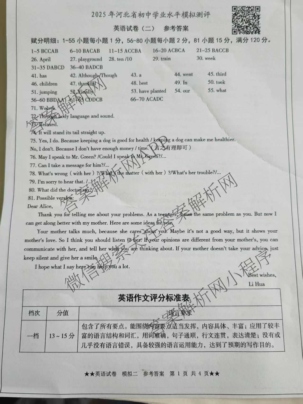 2025年河北省初中学业水平模拟测评(二)二星英语答案,目前分科卷答案网已经汇总了2025年河北省初中学业水平模拟测评(二)二星英语答案的各科答案和试卷,获取更多河北省初中学业水平模拟测评答案解析,请在关注本站。