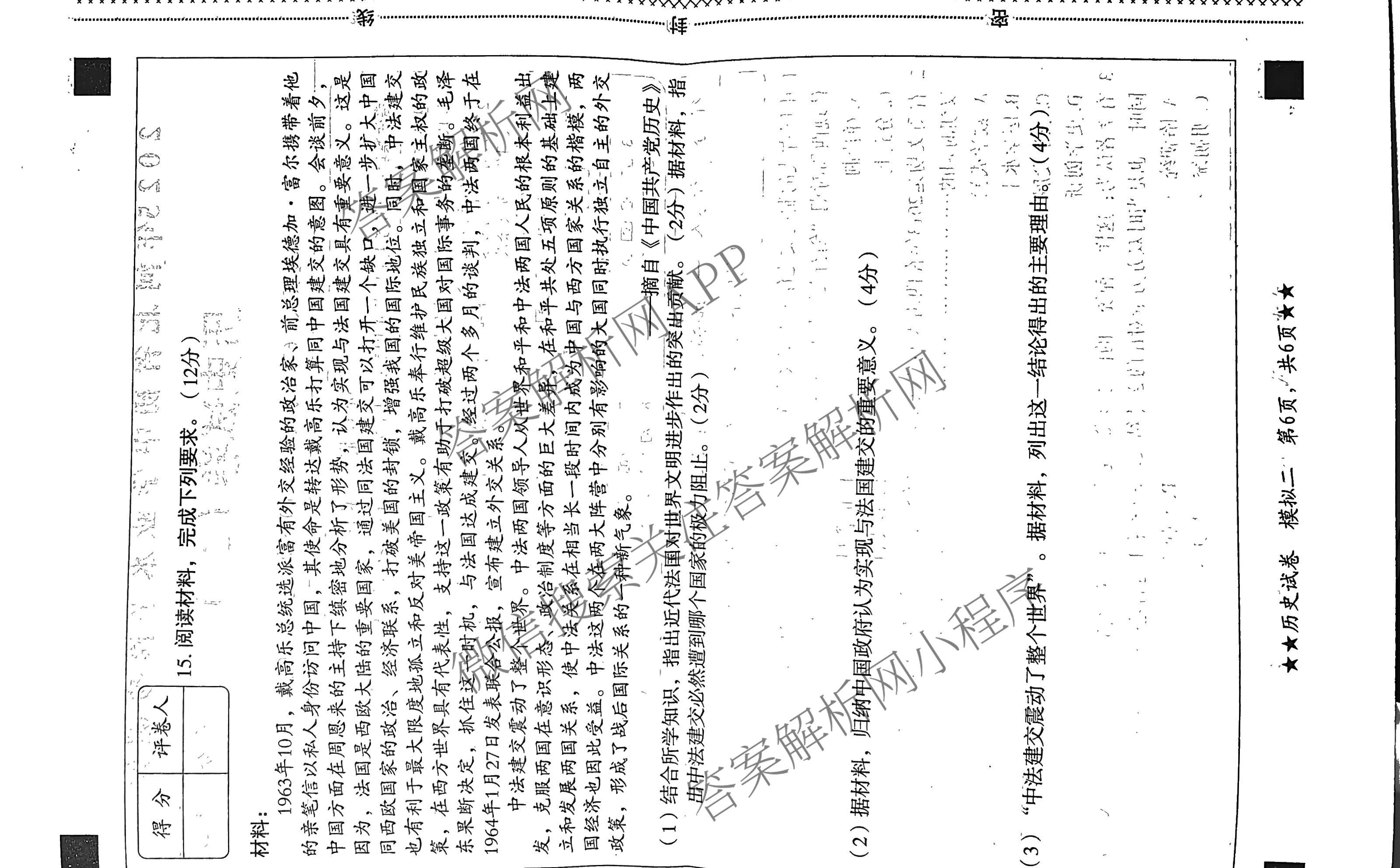 2025年河北省初中学业水平模拟测评(二)二星历史试题,目前分科卷答案网已经汇总了2025年河北省初中学业水平模拟测评(二)二星历史试题的各科答案和试卷,获取更多河北省初中学业水平模拟测评答案解析,请在关注本站。