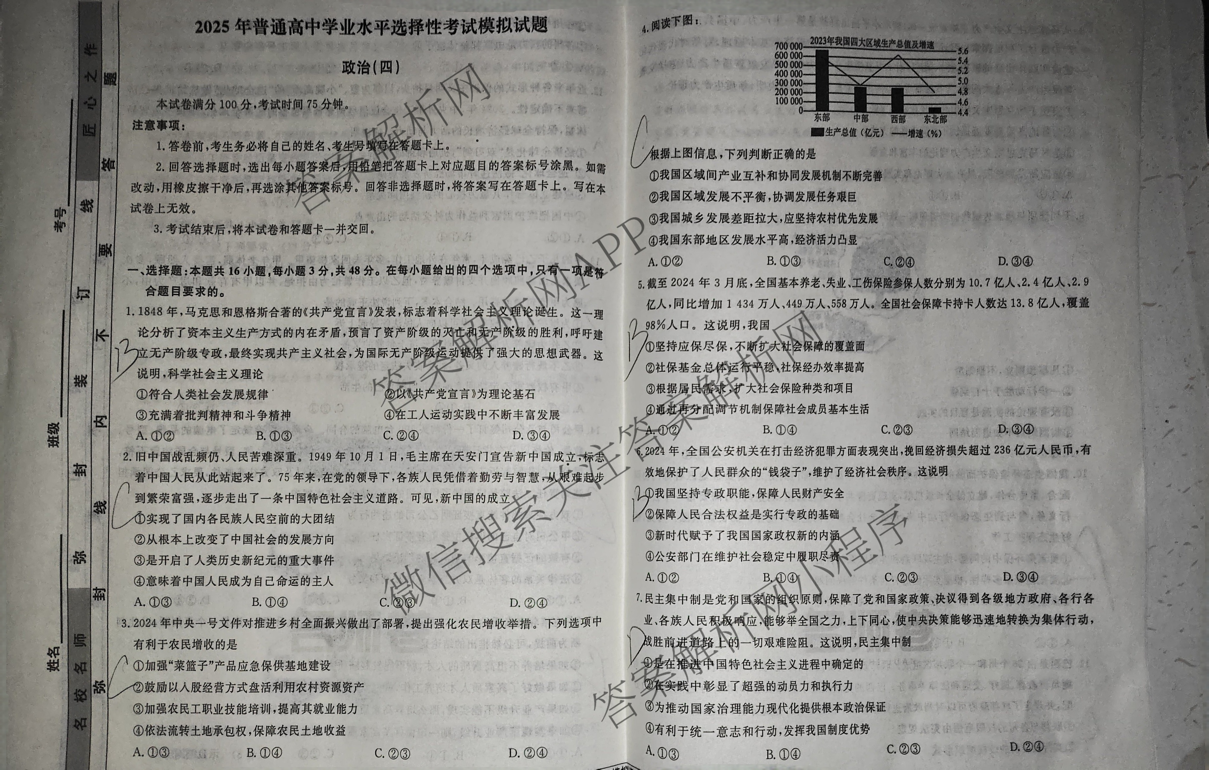 衡水名师卷高考模拟调研卷 2025年普通高中学业水平选择性考试模拟试题(四)4政治(无符号)试题