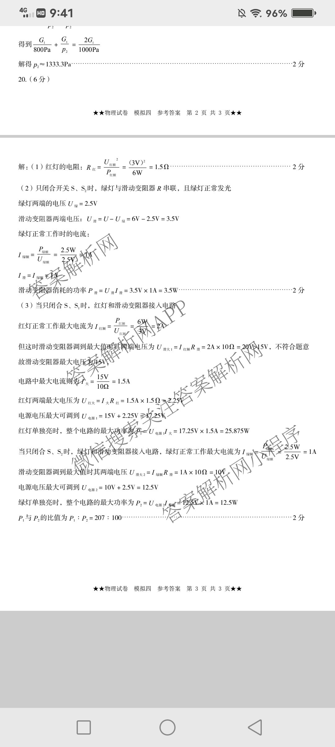 - (九年级)2025年河北省初中学业水平模拟测评(四)二星物理答案