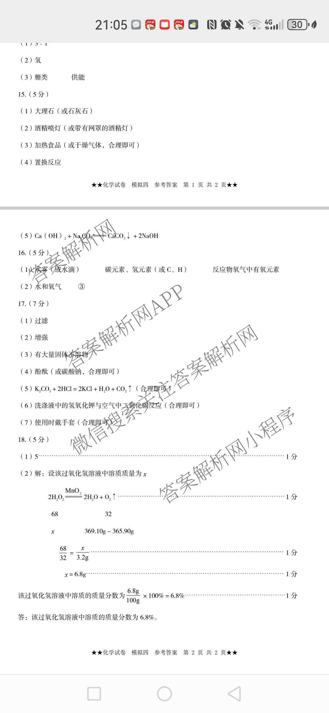 2025年河北省初中学业水平模拟测评(四)二星化学答案,目前分科卷答案网已经汇总了2025年河北省初中学业水平模拟测评(四)二星化学答案的各科答案和试卷,获取更多河北省初中学业水平模拟测评答案解析,请在关注本站。