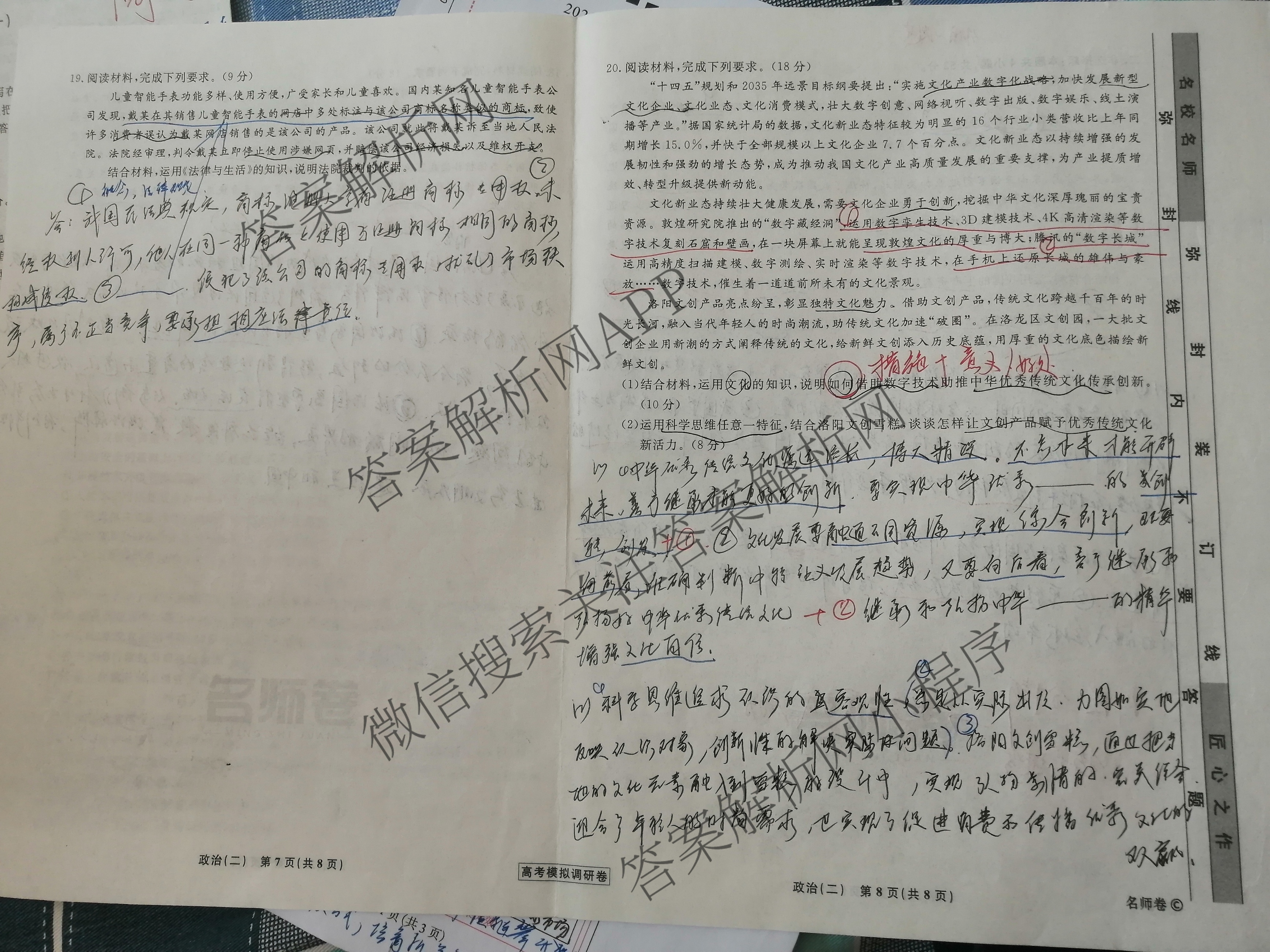 - [高三](衡水名师卷)高考模拟调研卷 2024年普通高中学业水平选择性考试模拟 政治(二)2答案
