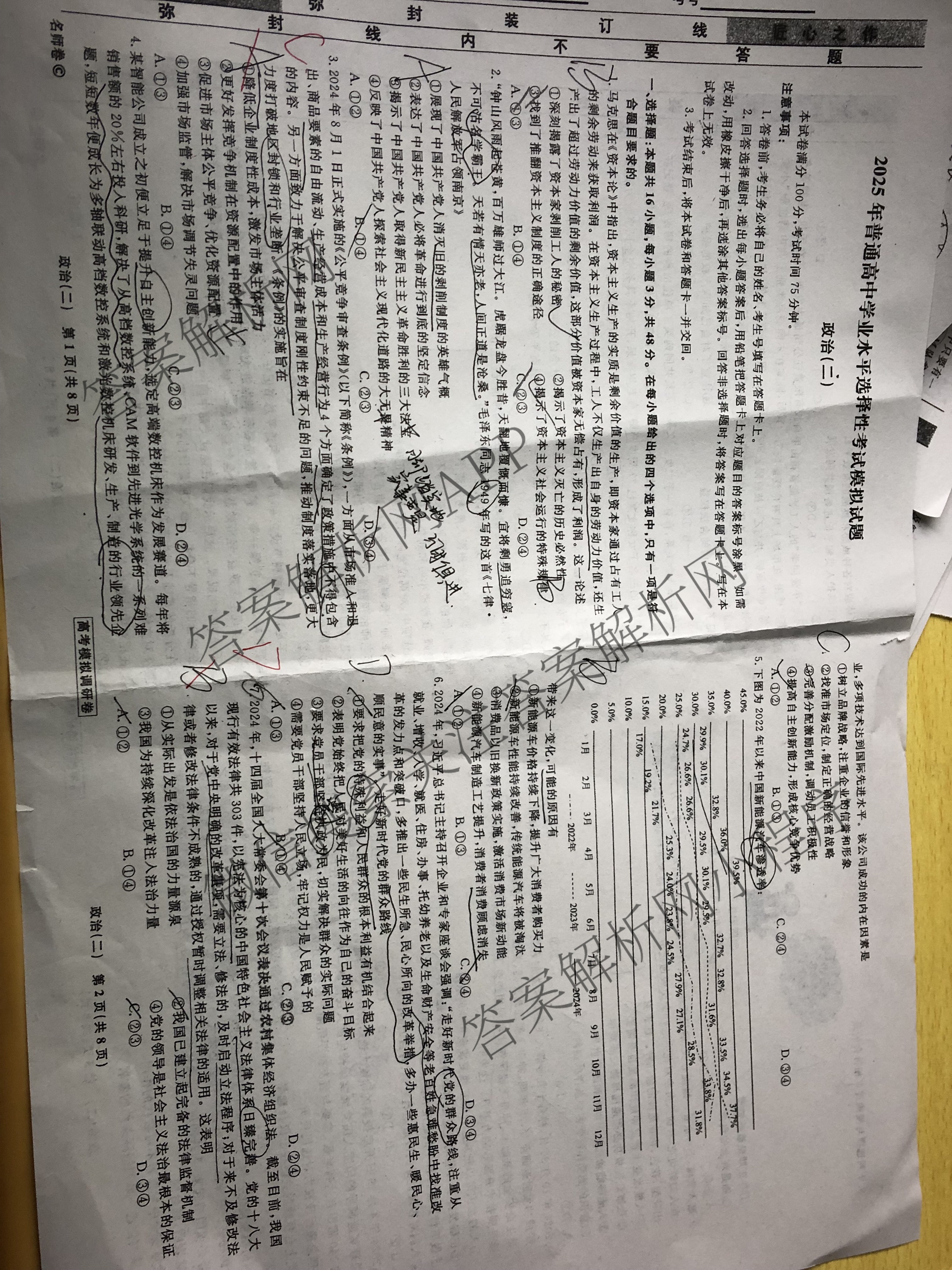 - [高三](衡水名师卷)高考模拟调研卷 2024年普通高中学业水平选择性考试模拟 政治(二)2答案