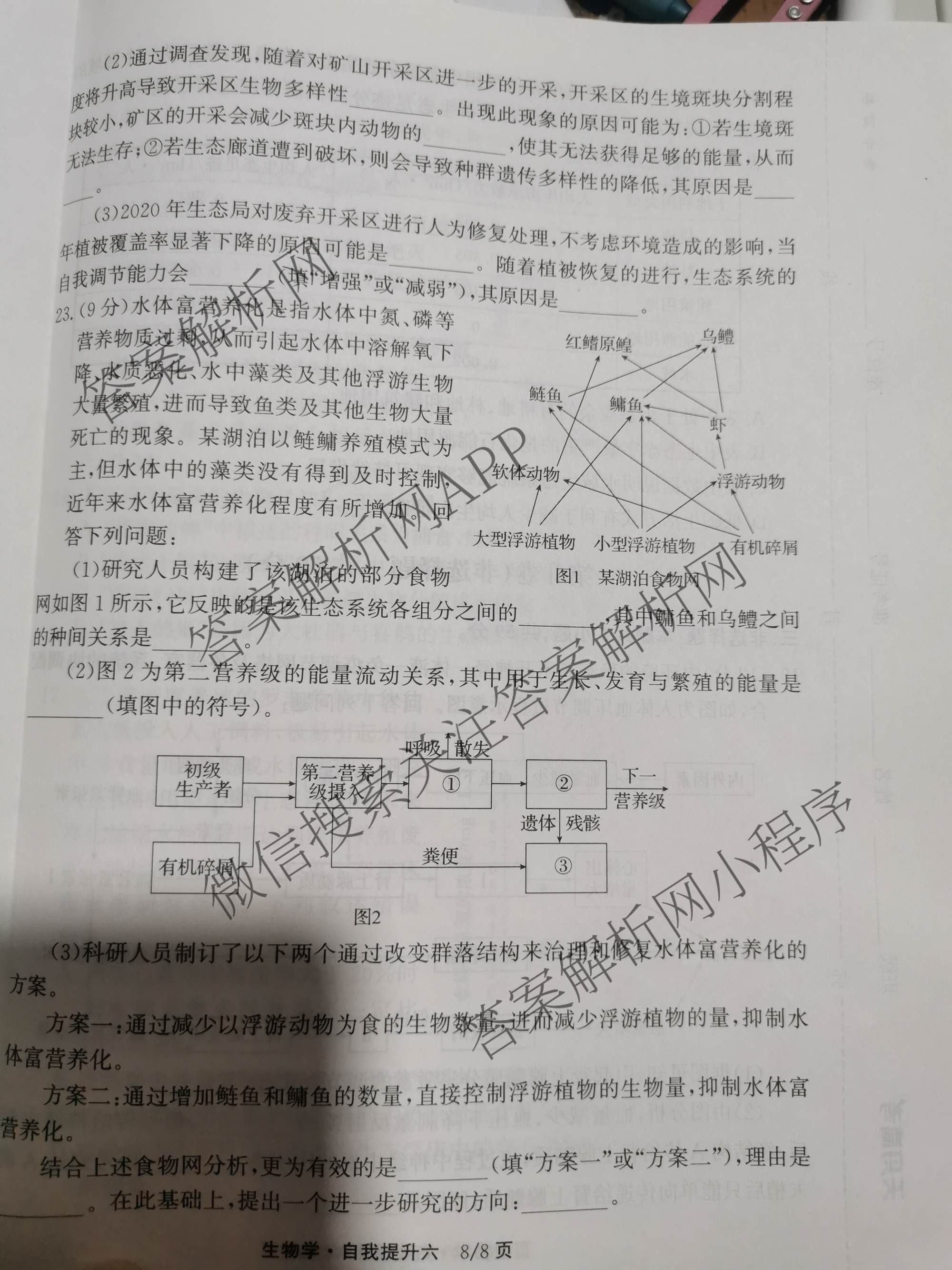 2024-2025学年度上学期高三年级自我提升六生物(BX)试题,目前分科卷答案网已经汇总了2024-2025学年度上学期高三年级自我提升六生物(BX)试题的各科答案和试卷,获取更多衡中同卷答案解析,请在关注本站。