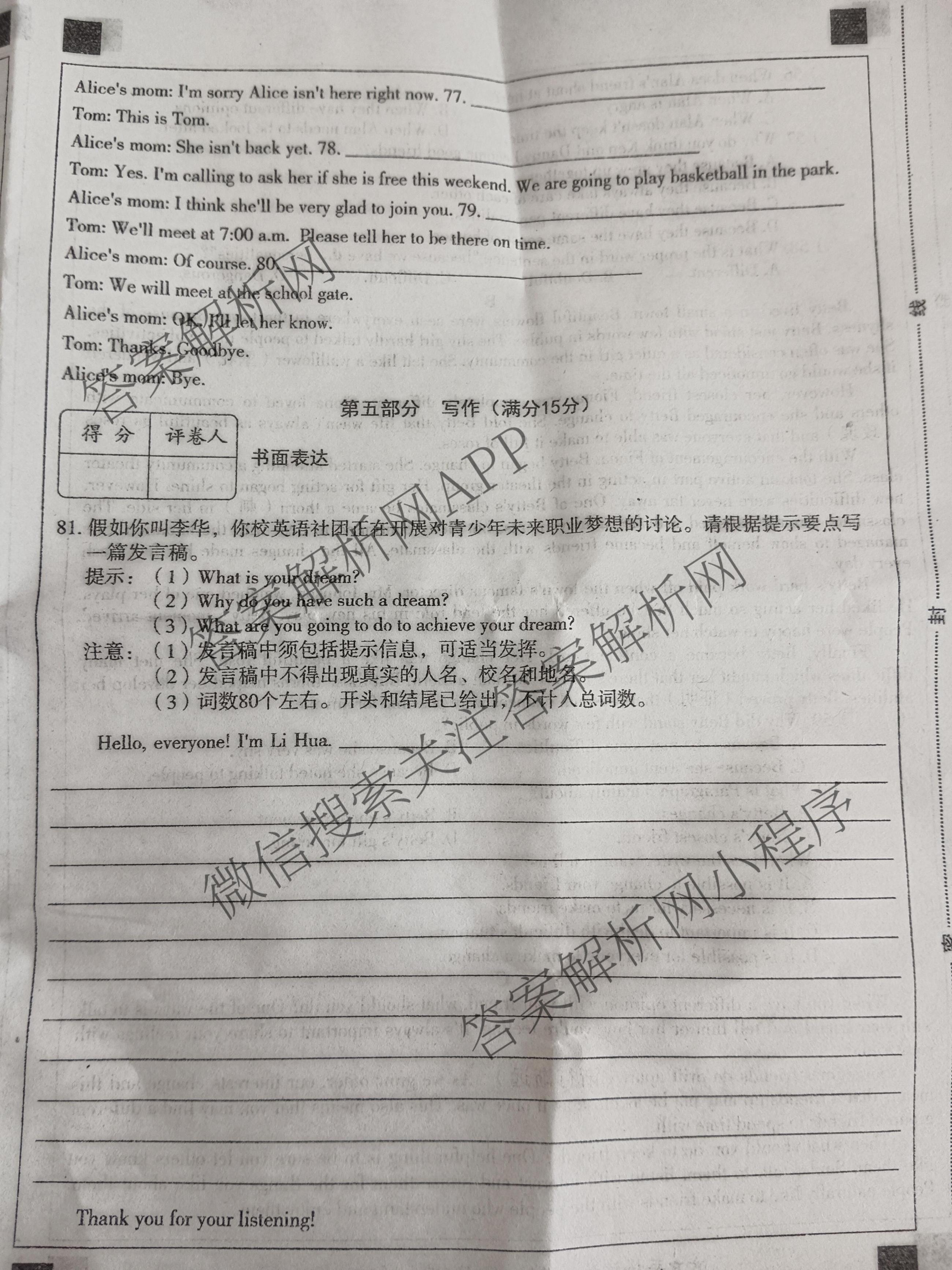 2025年河北省初中学业水平模拟测评(八)二星英语试题,目前分科卷答案网已经汇总了2025年河北省初中学业水平模拟测评(八)二星英语试题的各科答案和试卷,获取更多河北省初中学业水平模拟测评答案解析,请在关注本站。