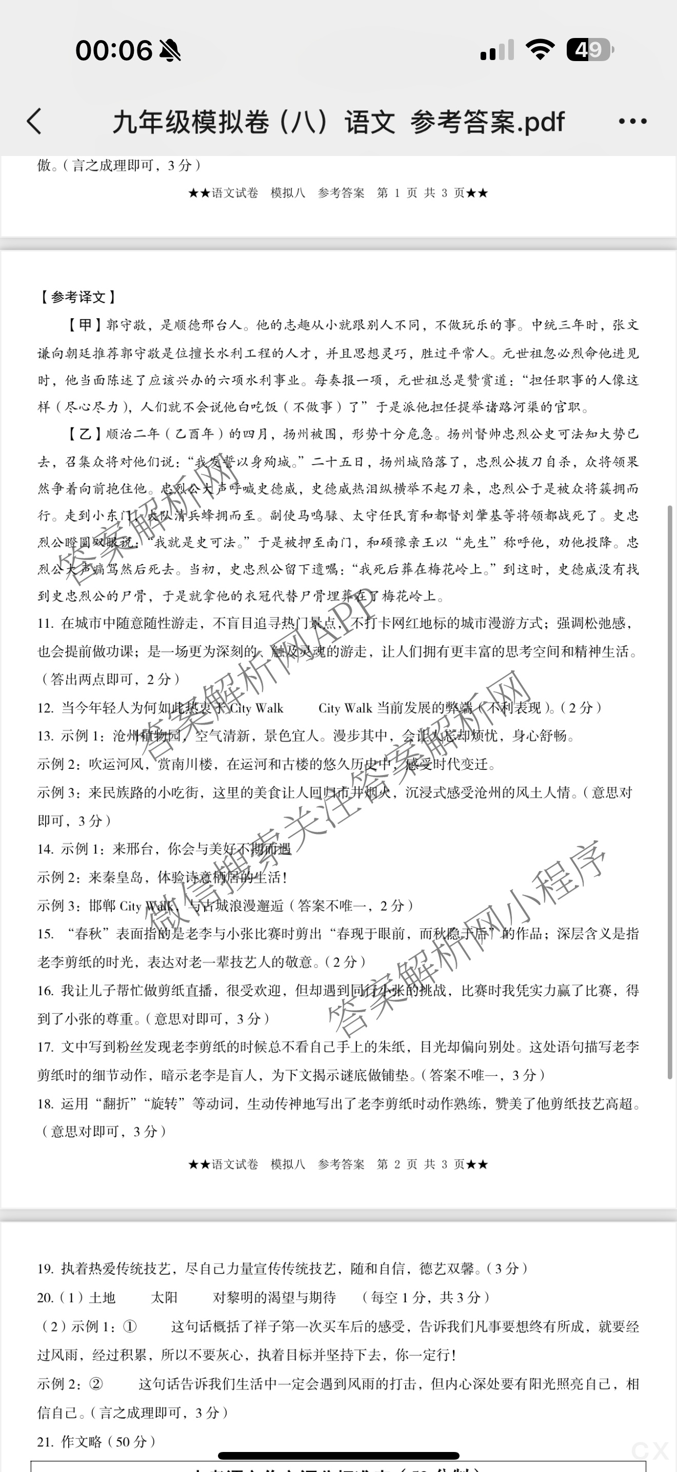 - 九年级2025年[河北省初中学业水平模拟测评](八)二星语文答案