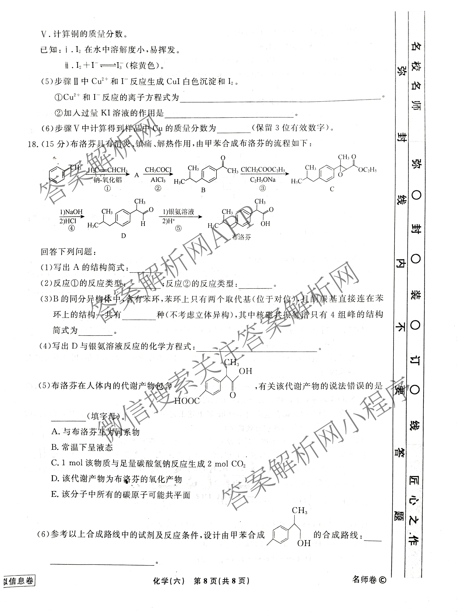 衡水名师卷·高考模拟信息卷·2025年普通高中学业水平选择性考试模拟试题(六)6化学(空心圆)试题,目前分科卷答案网已经汇总了衡水名师卷·高考模拟信息卷·2025年普通高中学业水平选择性考试模拟试题(六)6化学(空心圆)试题的各科答案和试卷,获取更多衡水名师卷答案解析,请在关注本站。