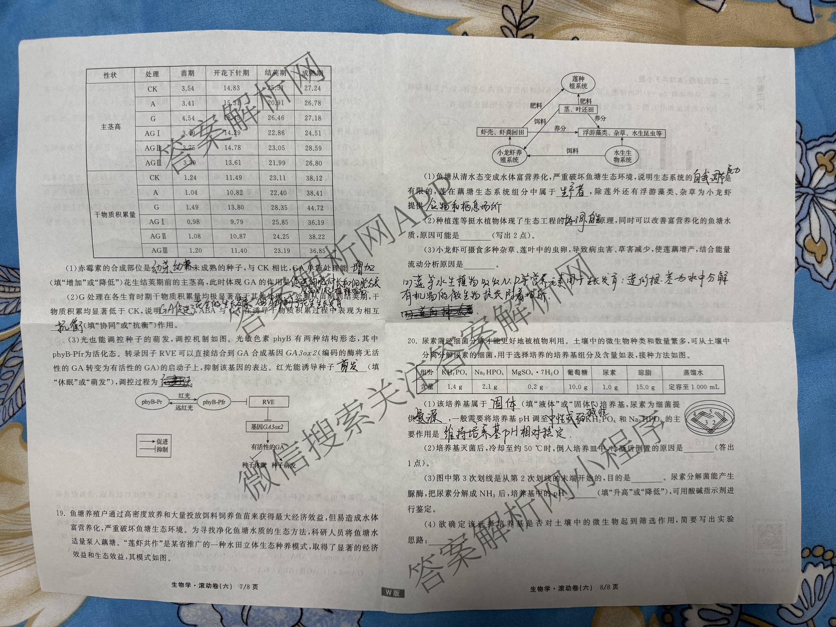 衡中同卷2024-2025学年度高三复习滚动卷(六)6生物(W版)试题