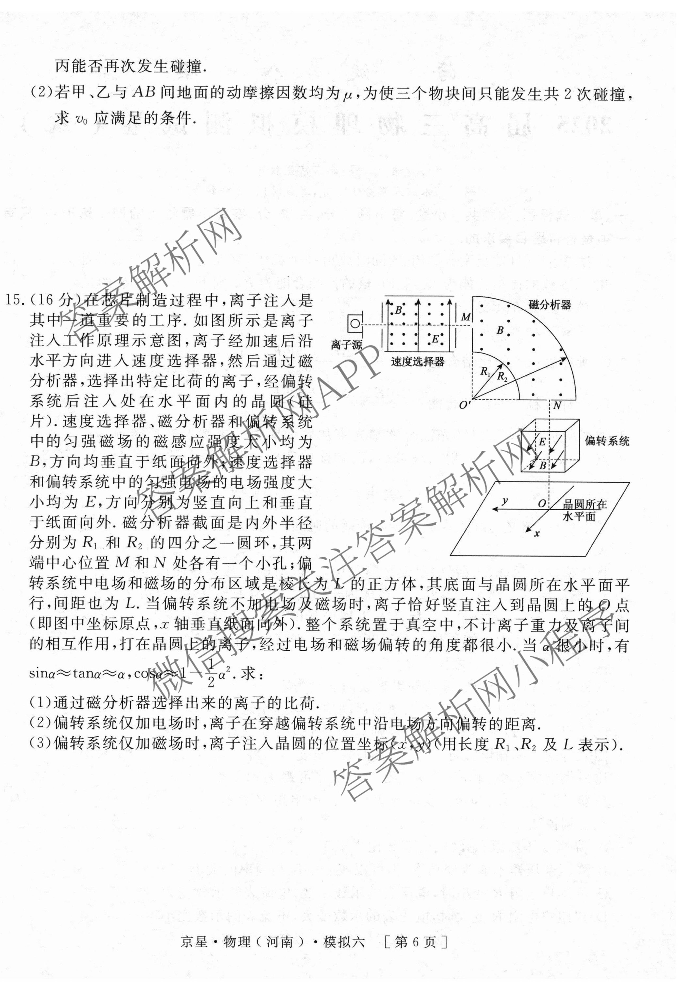 海淀八模·2025届高三物理模拟测试卷(六)6物理(河南)试题,目前分科卷答案网已经汇总了海淀八模·2025届高三物理模拟测试卷(六)6物理(河南)试题的各科答案和试卷,获取更多海淀八模答案解析,请在关注本站。