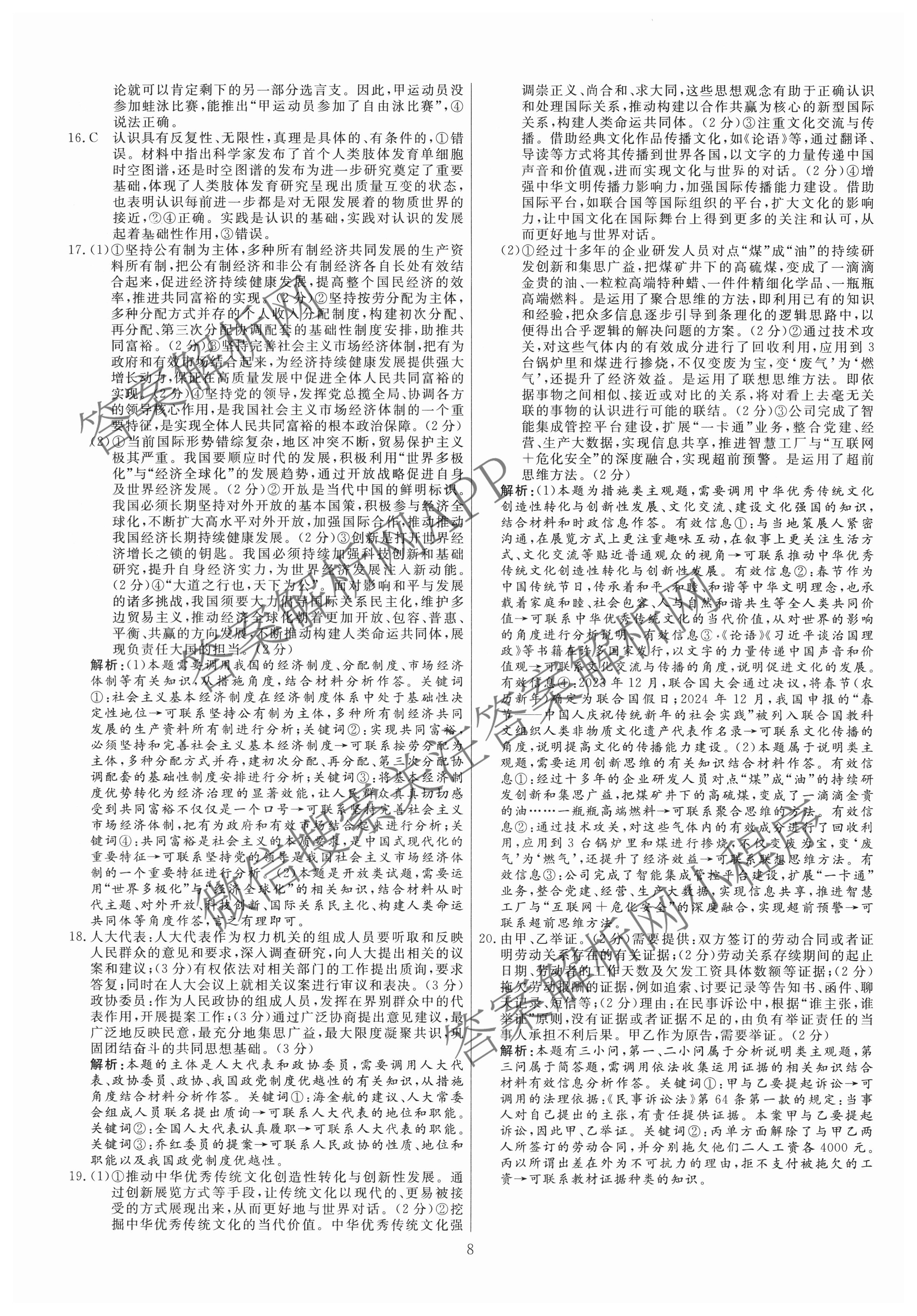 海淀八模2025届高三政治模拟测试卷(八)8政治(河南)答案