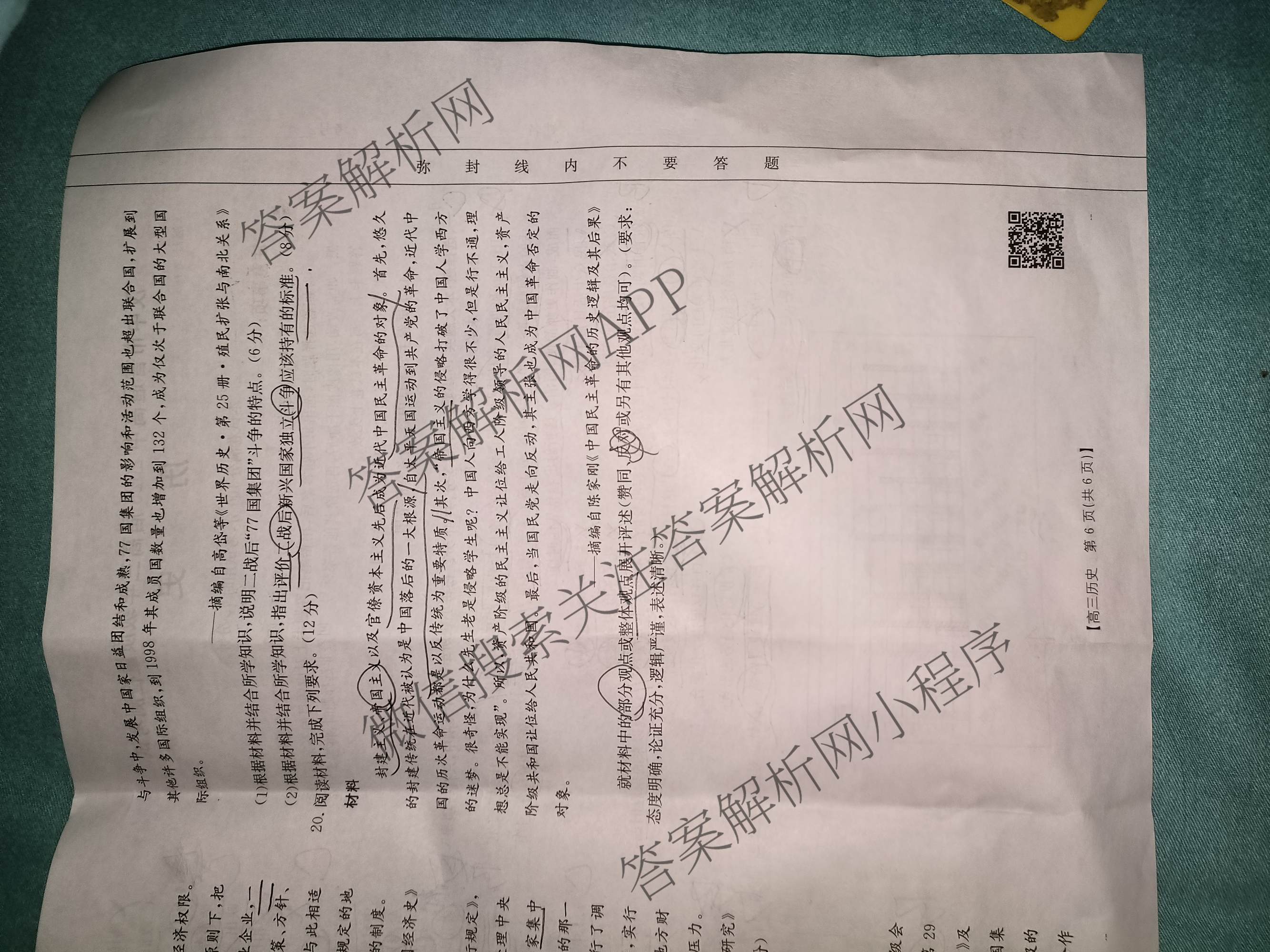 [汉中二模]汉中市普通高中2025届高三年级质量检测考试历史试题,目前分科卷答案网已经汇总了[汉中二模]汉中市普通高中2025届高三年级质量检测考试历史试题的各科答案和试卷,获取更多地方模拟答案解析,请在关注本站。