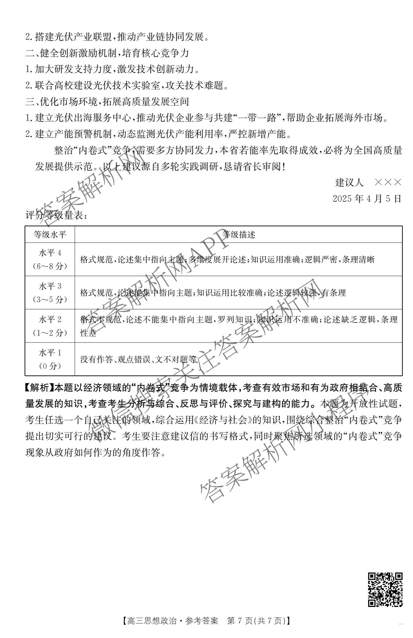- 2025届[汉中二模]汉中市普通高中(高三)年级质量检测考试政治答案
