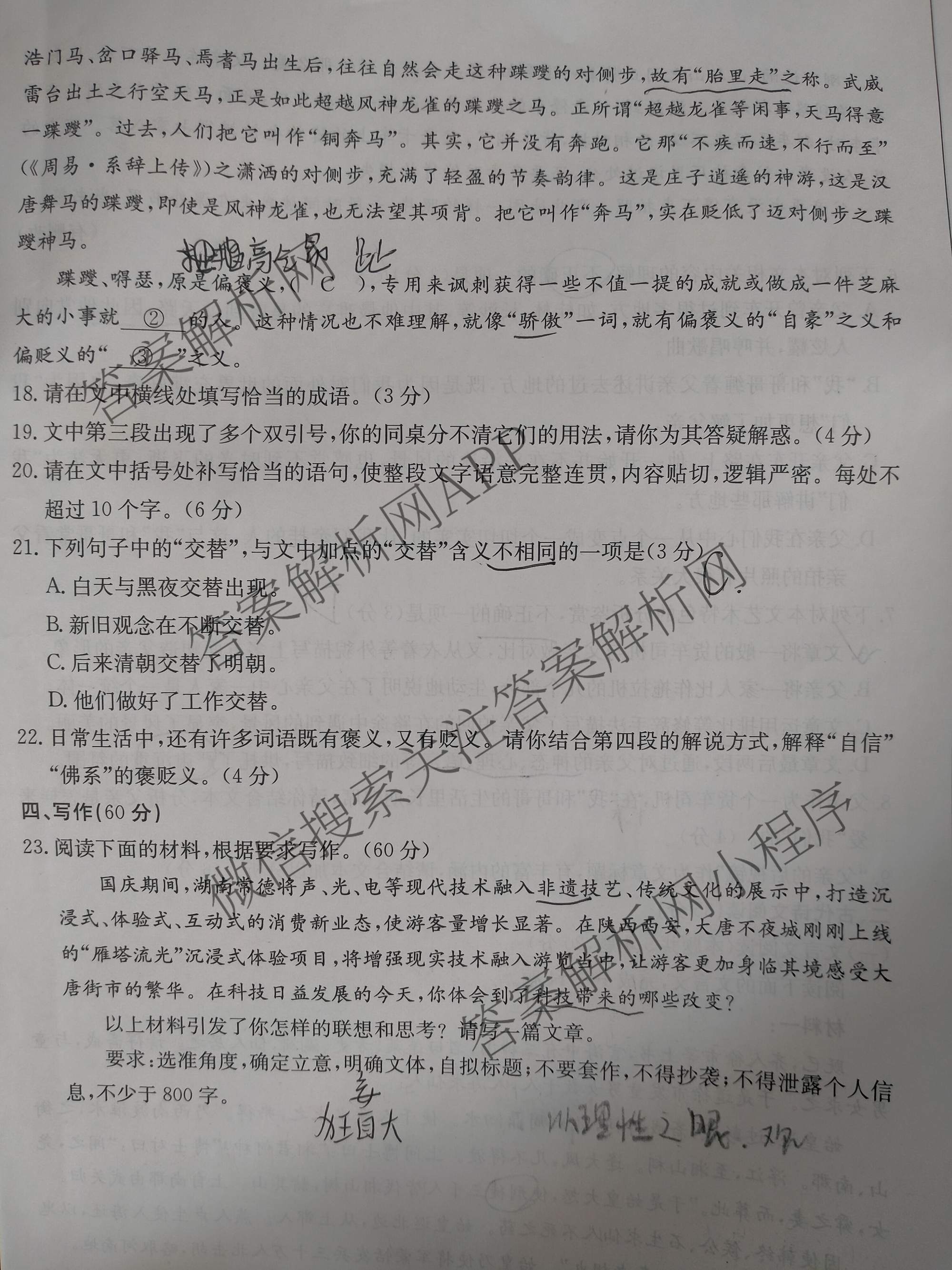 [汉中二模]汉中市普通高中2025届高三年级质量检测考试语文试题,目前分科卷答案网已经汇总了[汉中二模]汉中市普通高中2025届高三年级质量检测考试语文试题的各科答案和试卷,获取更多地方模拟答案解析,请在关注本站。