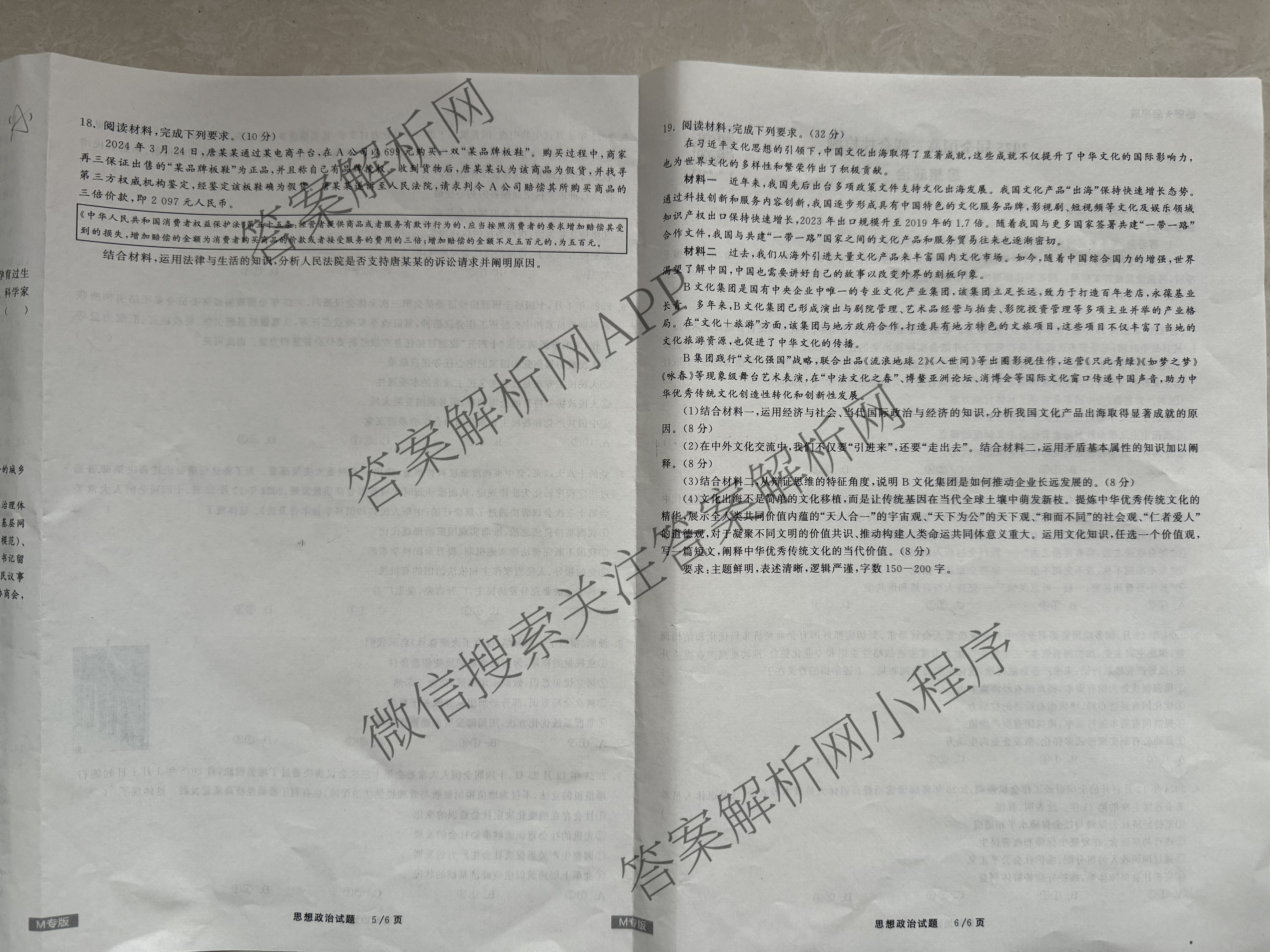天舟高考·衡中同卷·2025届全国高三联合性检测(4月)政治(M专版)试题,目前分科卷答案网已经汇总了天舟高考·衡中同卷·2025届全国高三联合性检测(4月)政治(M专版)试题的各科答案和试卷,获取更多衡中同卷答案解析,请在关注本站。