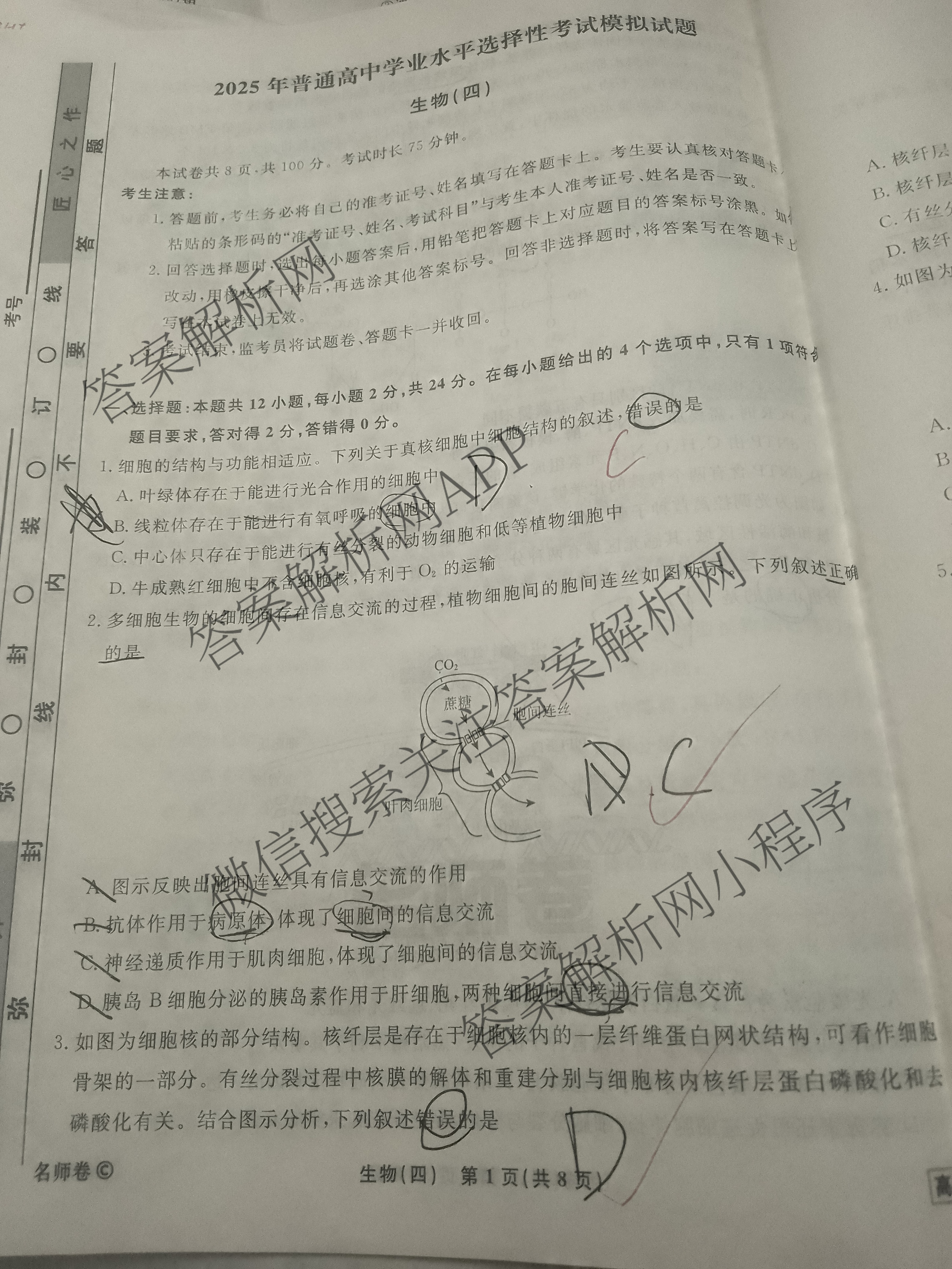 衡水名师卷·高考模拟调研卷 2025年普通高等学校招生全国统一考试模拟(四)4生物(空心圆)试题,目前分科卷答案网已经汇总了衡水名师卷·高考模拟调研卷 2025年普通高等学校招生全国统一考试模拟(四)4生物(空心圆)试题的各科答案和试卷,获取更多衡水名师卷答案解析,请在关注本站。
