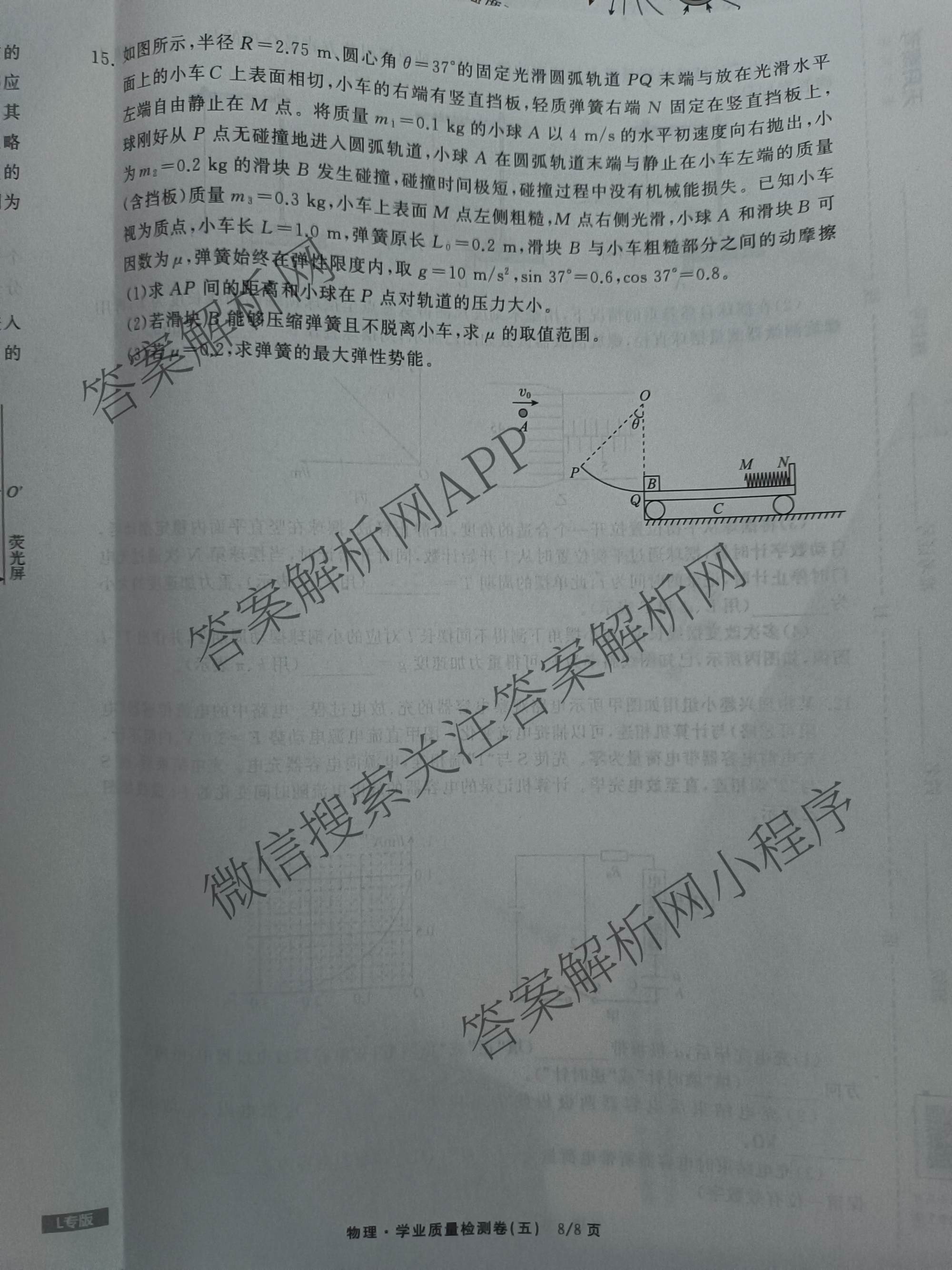 天舟高考衡中同卷2024-2025学年度高三学业质量检测卷(五)5物理(L专版)试题