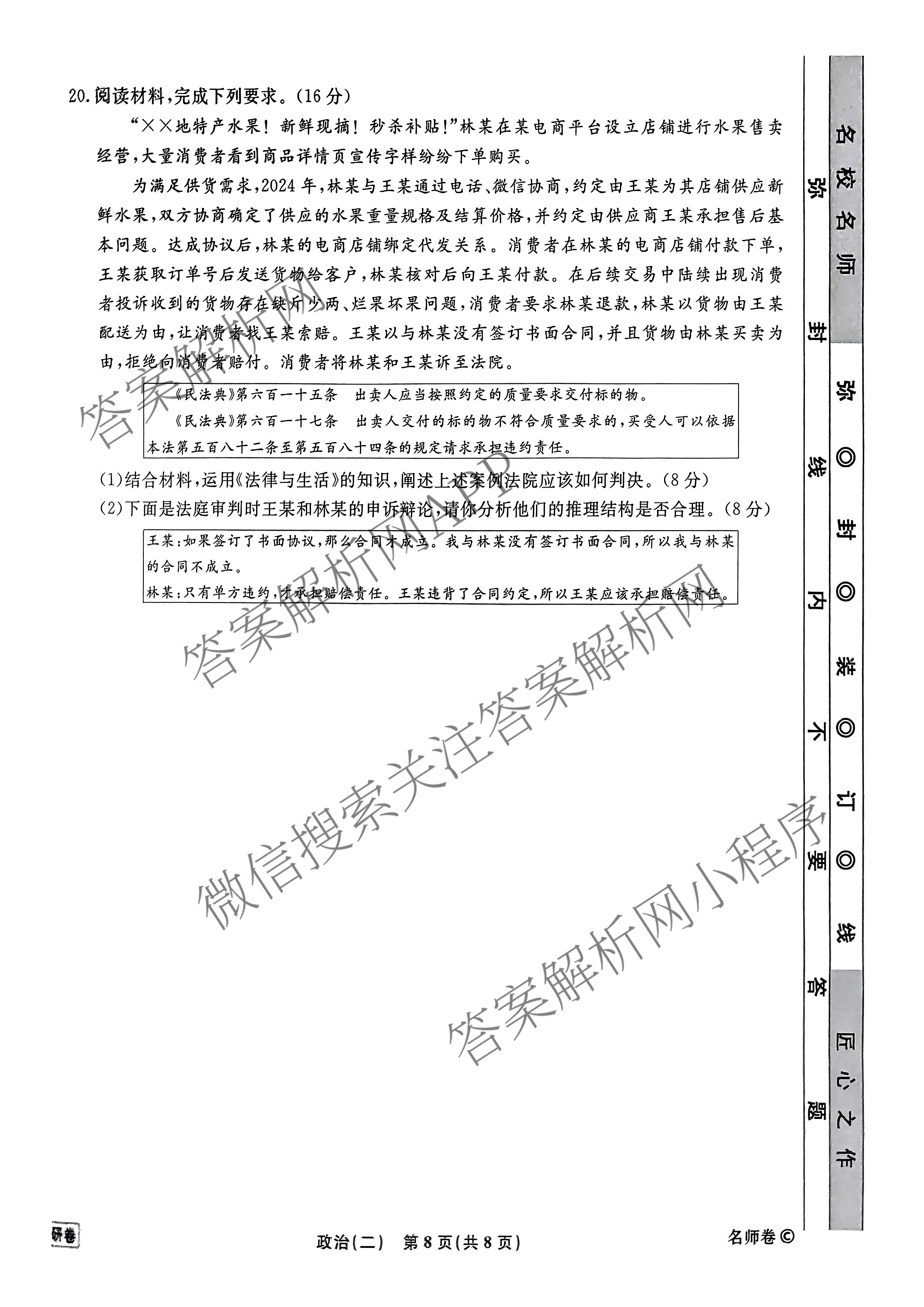 衡水名师卷·高考模拟调研卷 2025年普通高等学校招生全国统一考试模拟(二)2政治(◎)试题,目前分科卷答案网已经汇总了衡水名师卷·高考模拟调研卷 2025年普通高等学校招生全国统一考试模拟(二)2政治(◎)试题的各科答案和试卷,获取更多衡水名师卷答案解析,请在关注本站。