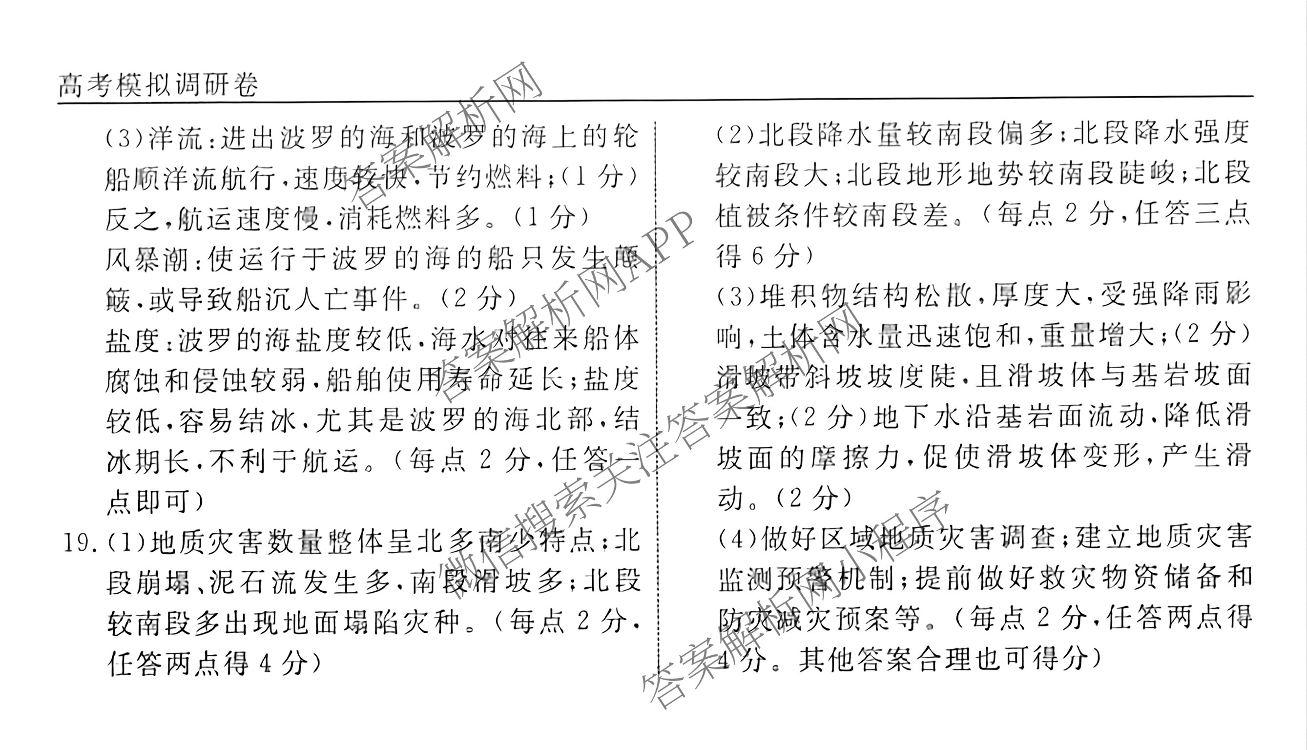 衡水名师卷高考模拟调研卷 2025年普通高等学校招生全国统一考试模拟(二)2地理(◎)答案