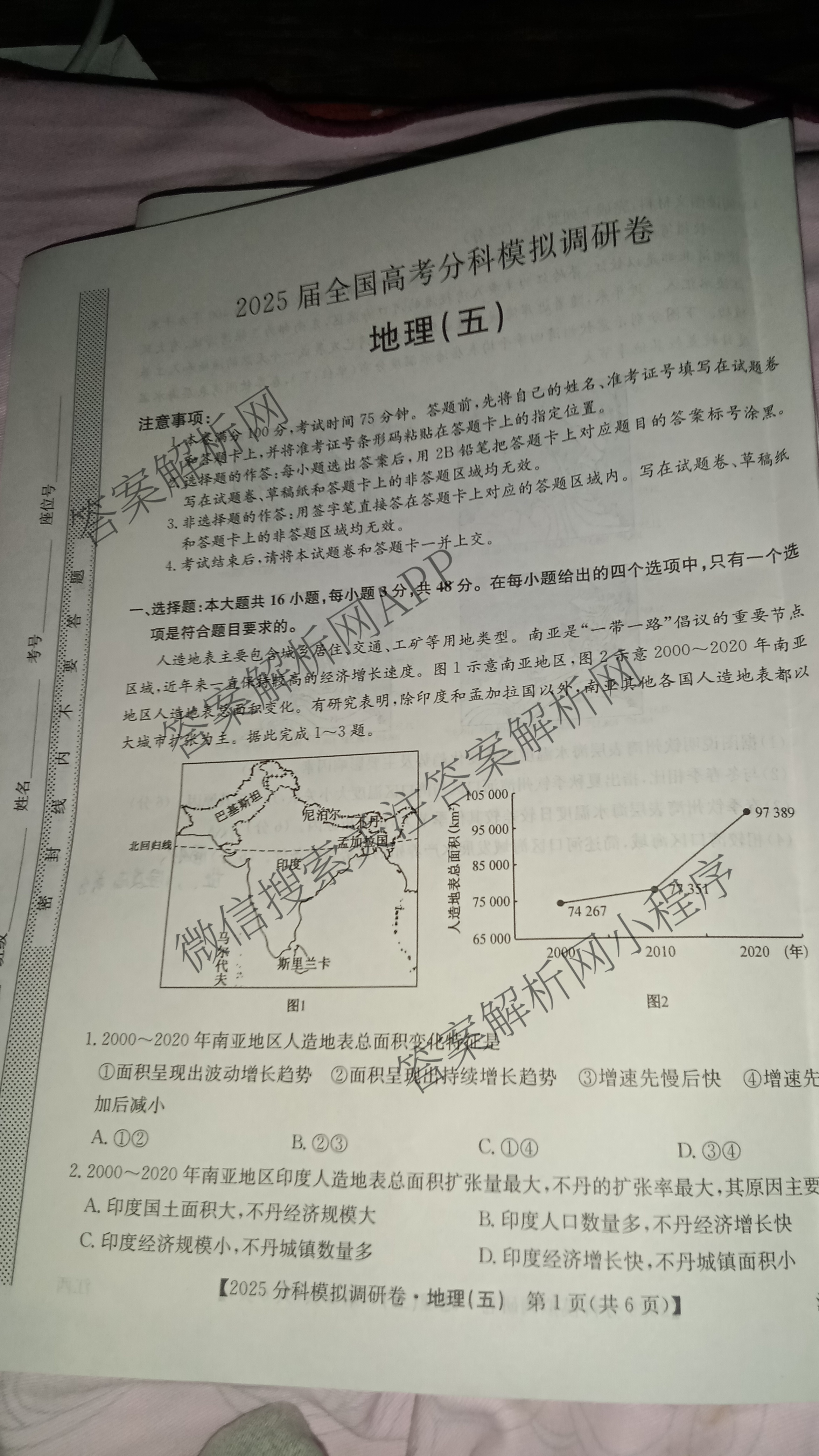 2025届全国高考分科模拟调研卷(五)5地理(江西)试题,目前分科卷答案网已经汇总了2025届全国高考分科模拟调研卷(五)5地理(江西)试题的各科答案和试卷,获取更多全国高考分科模拟调研卷答案解析,请在关注本站。