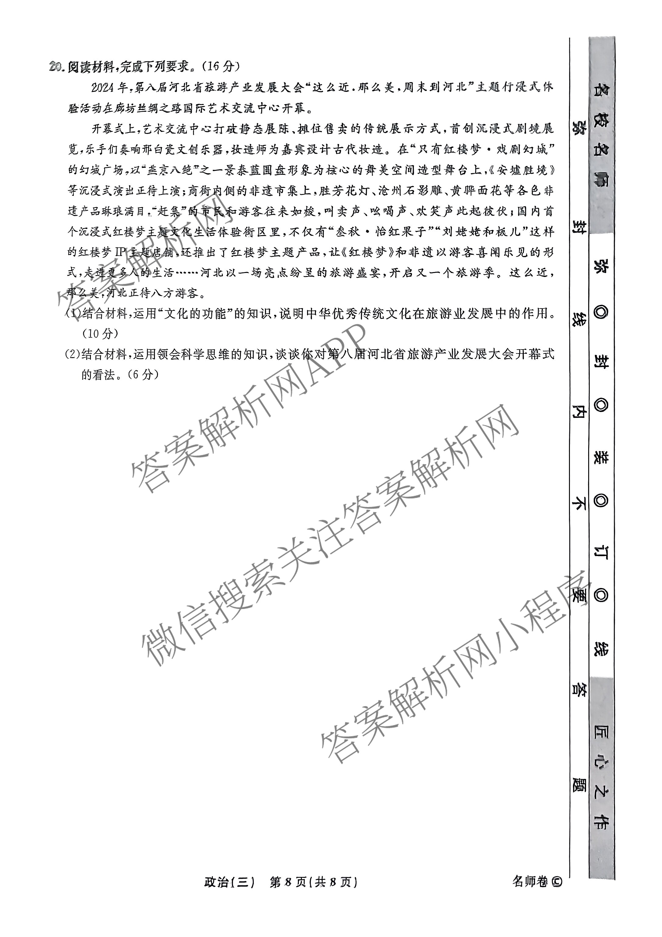 衡水名师卷高考模拟调研卷 2025年普通高等学校招生全国统一考试模拟(三)3政治(◎)试题