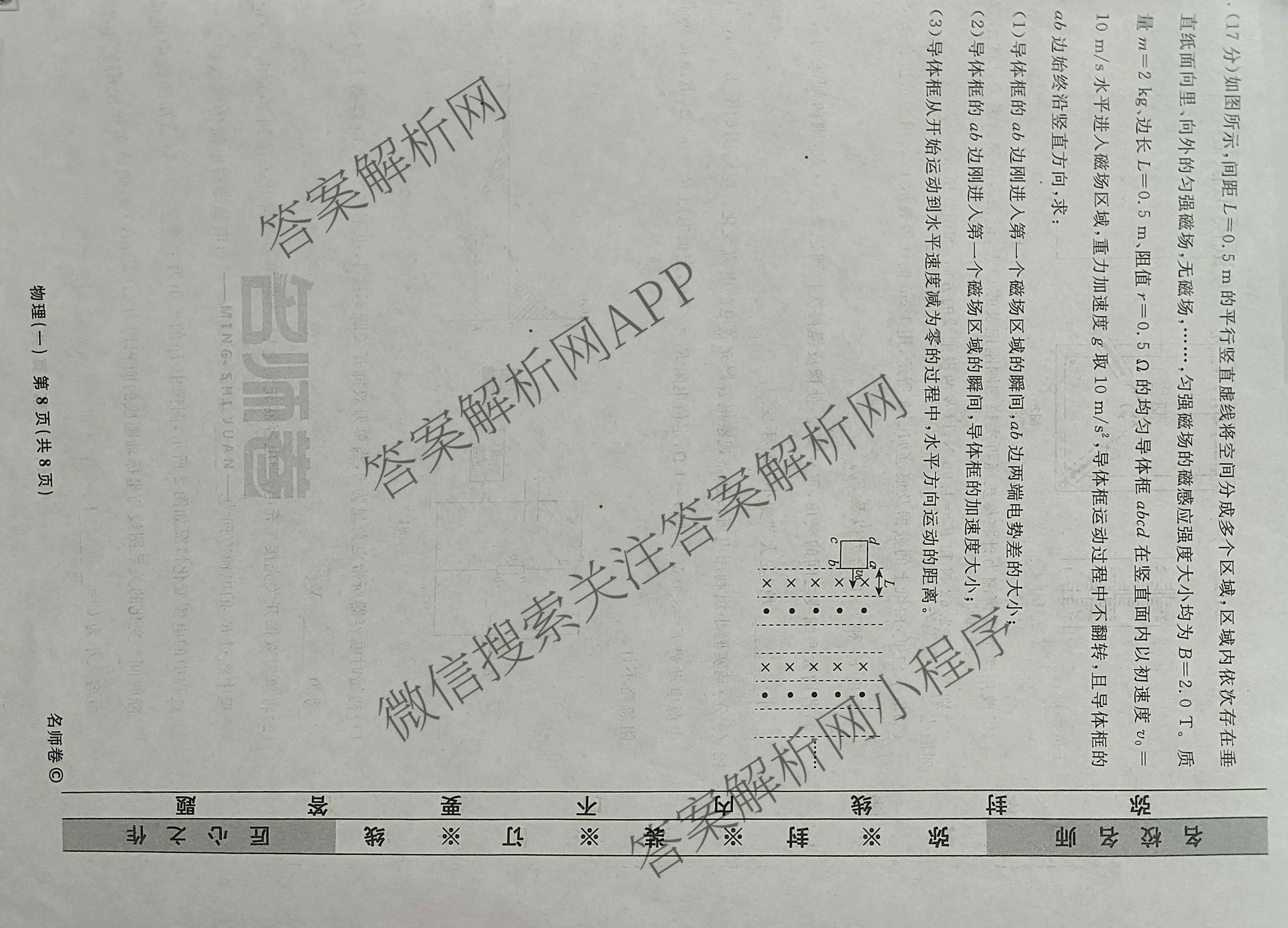 衡水名师卷·高考模拟信息卷 2025年普通高等学校招生全国统一考试模拟(一)1物理(※)试题,目前分科卷答案网已经汇总了衡水名师卷·高考模拟信息卷 2025年普通高等学校招生全国统一考试模拟(一)1物理(※)试题的各科答案和试卷,获取更多衡水名师卷答案解析,请在关注本站。