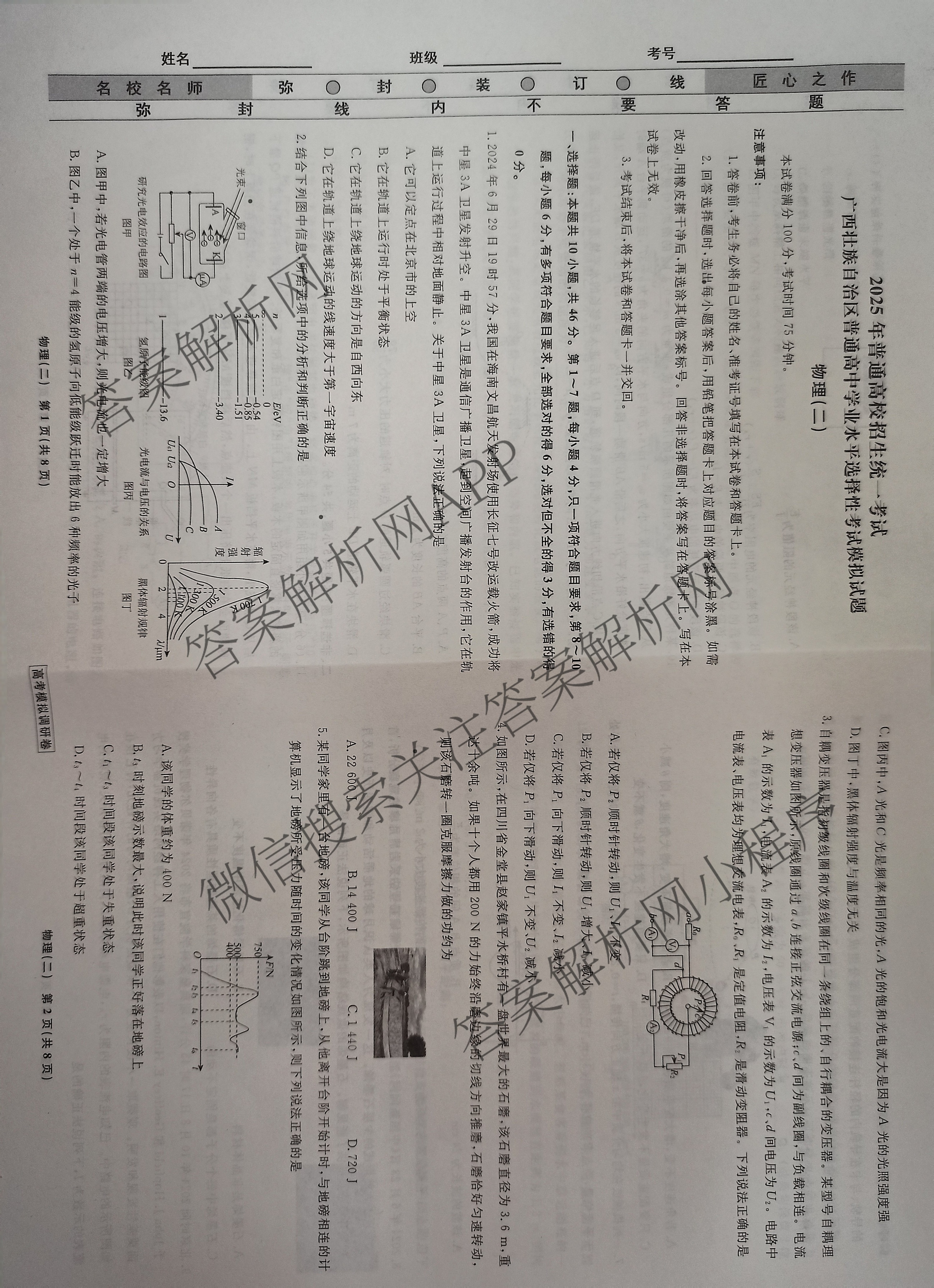 衡水名师卷高考模拟调研卷 2025年普通高等学校招生全国统一考试模拟(二)2物理(实心圆)试题