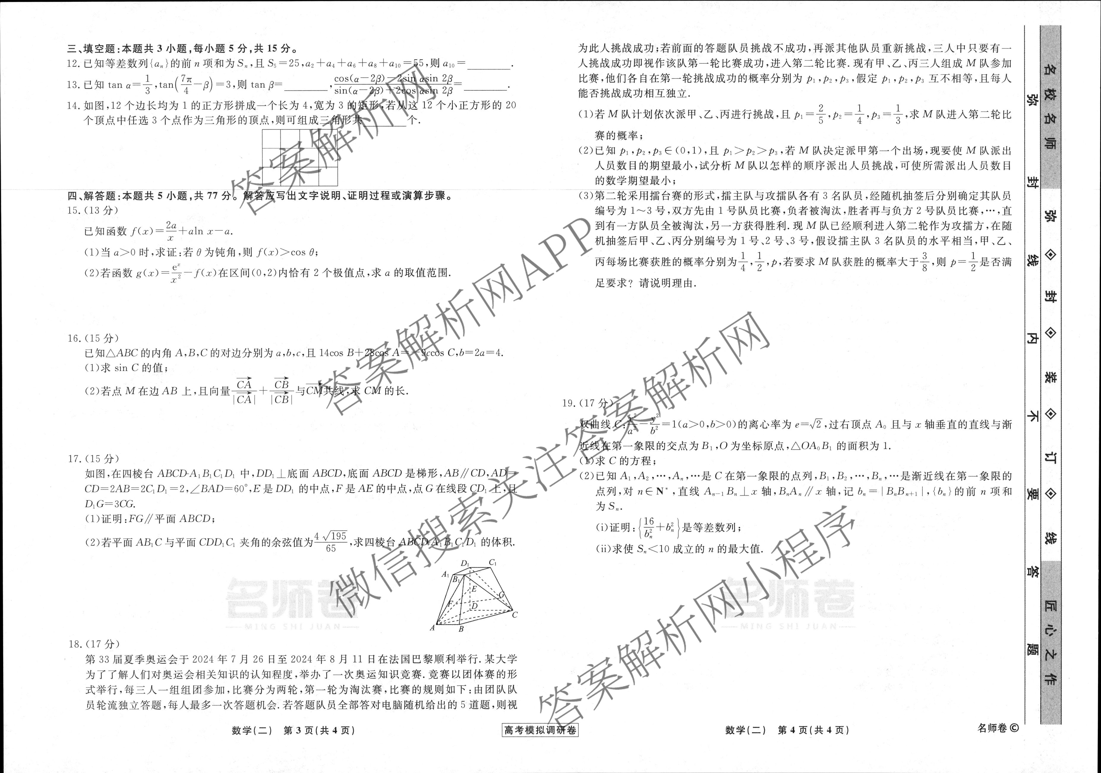 衡水名师卷·高考模拟调研卷 2025年普通高等学校招生全国统一考试模拟(二)2数学(双菱形)试题,目前分科卷答案网已经汇总了衡水名师卷·高考模拟调研卷 2025年普通高等学校招生全国统一考试模拟(二)2数学(双菱形)试题的各科答案和试卷,获取更多衡水名师卷答案解析,请在关注本站。
