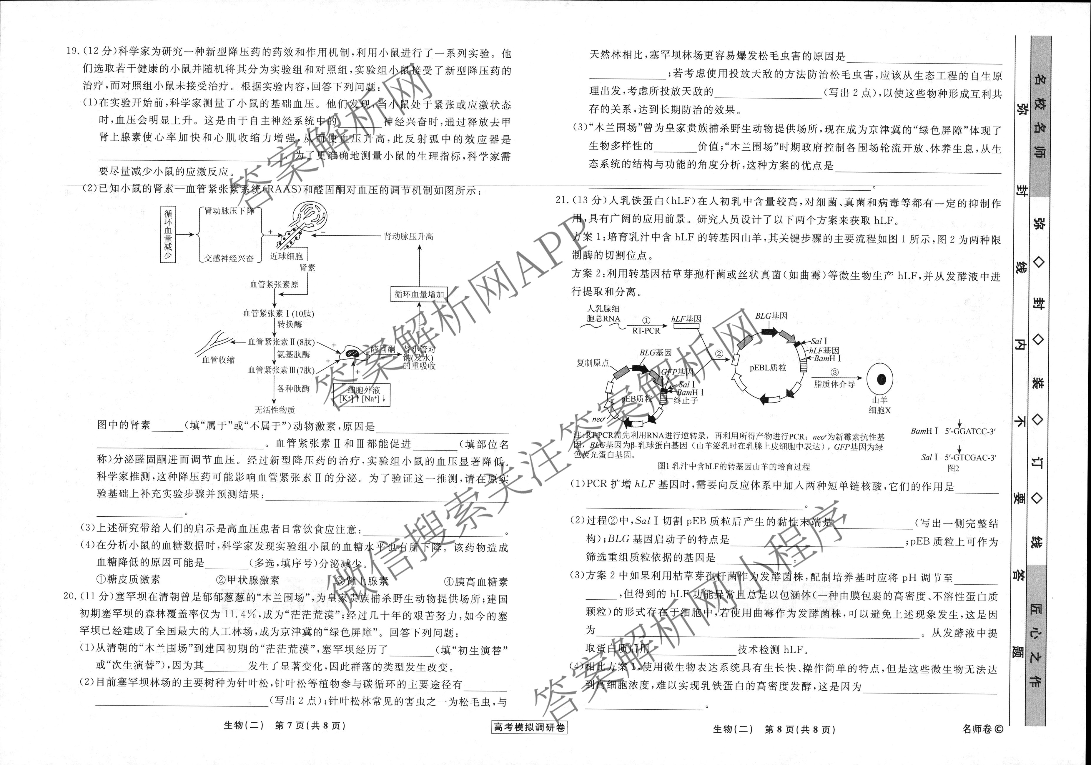 衡水名师卷·高考模拟调研卷 2025年普通高等学校招生全国统一考试模拟(二)2生物(空心菱形)试题,目前分科卷答案网已经汇总了衡水名师卷·高考模拟调研卷 2025年普通高等学校招生全国统一考试模拟(二)2生物(空心菱形)试题的各科答案和试卷,获取更多衡水名师卷答案解析,请在关注本站。