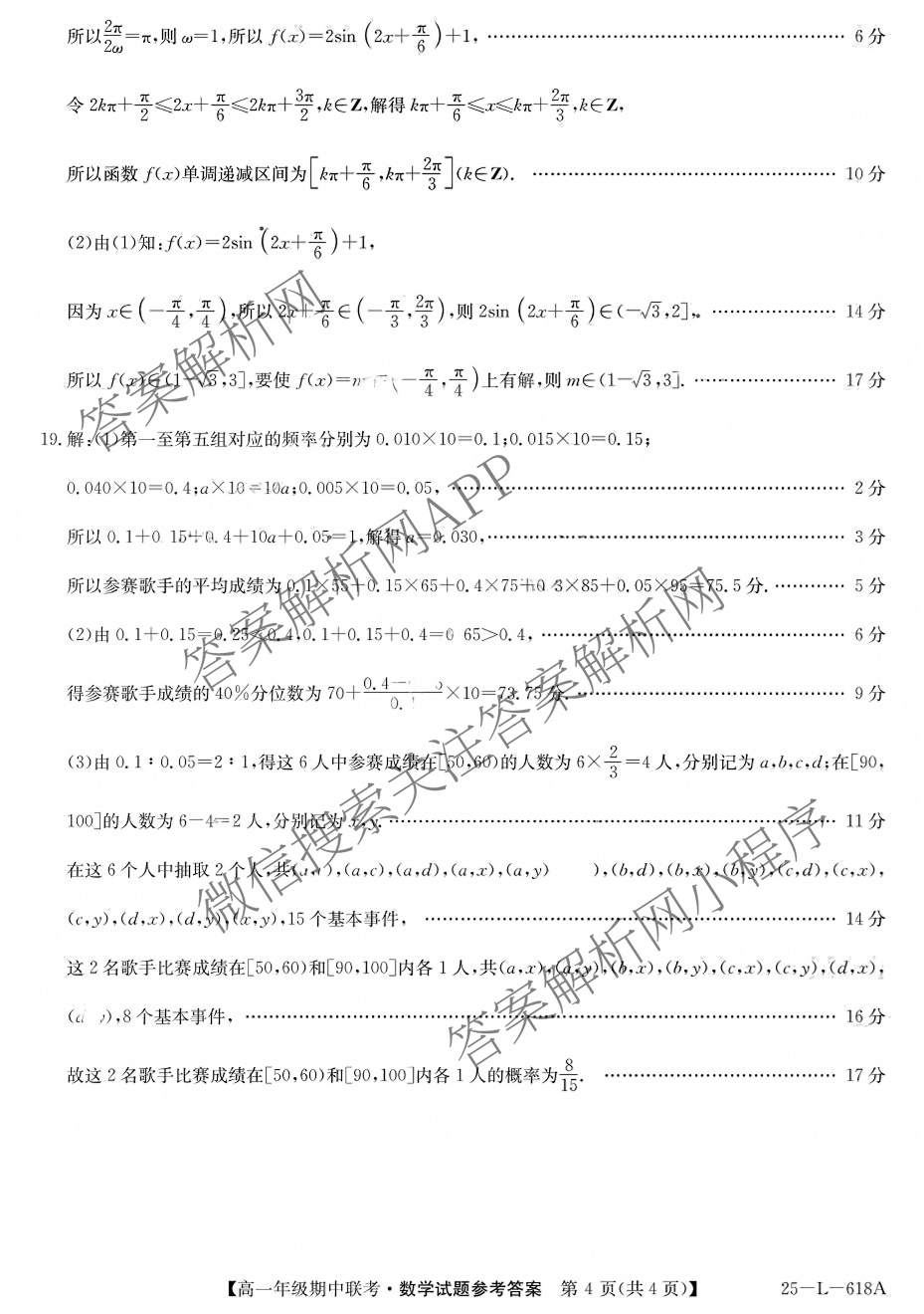 - 2024~2025(高一)安徽省学年度第二学期年级期中联考(25-L-618A)数学答案