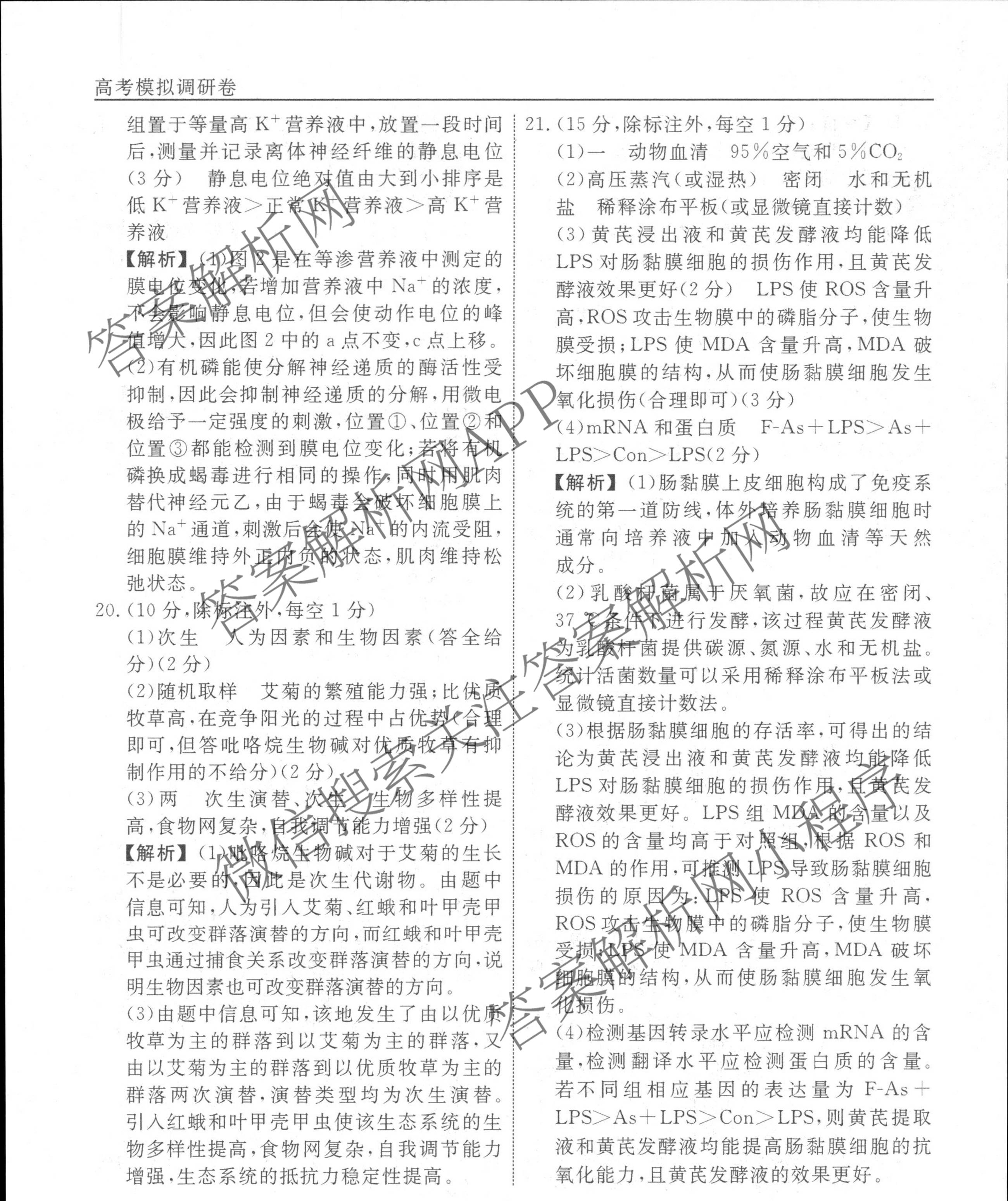 衡水名师卷高考模拟调研卷 2025年普通高等学校招生全国统一考试模拟(四)4生物(空心菱形)答案
