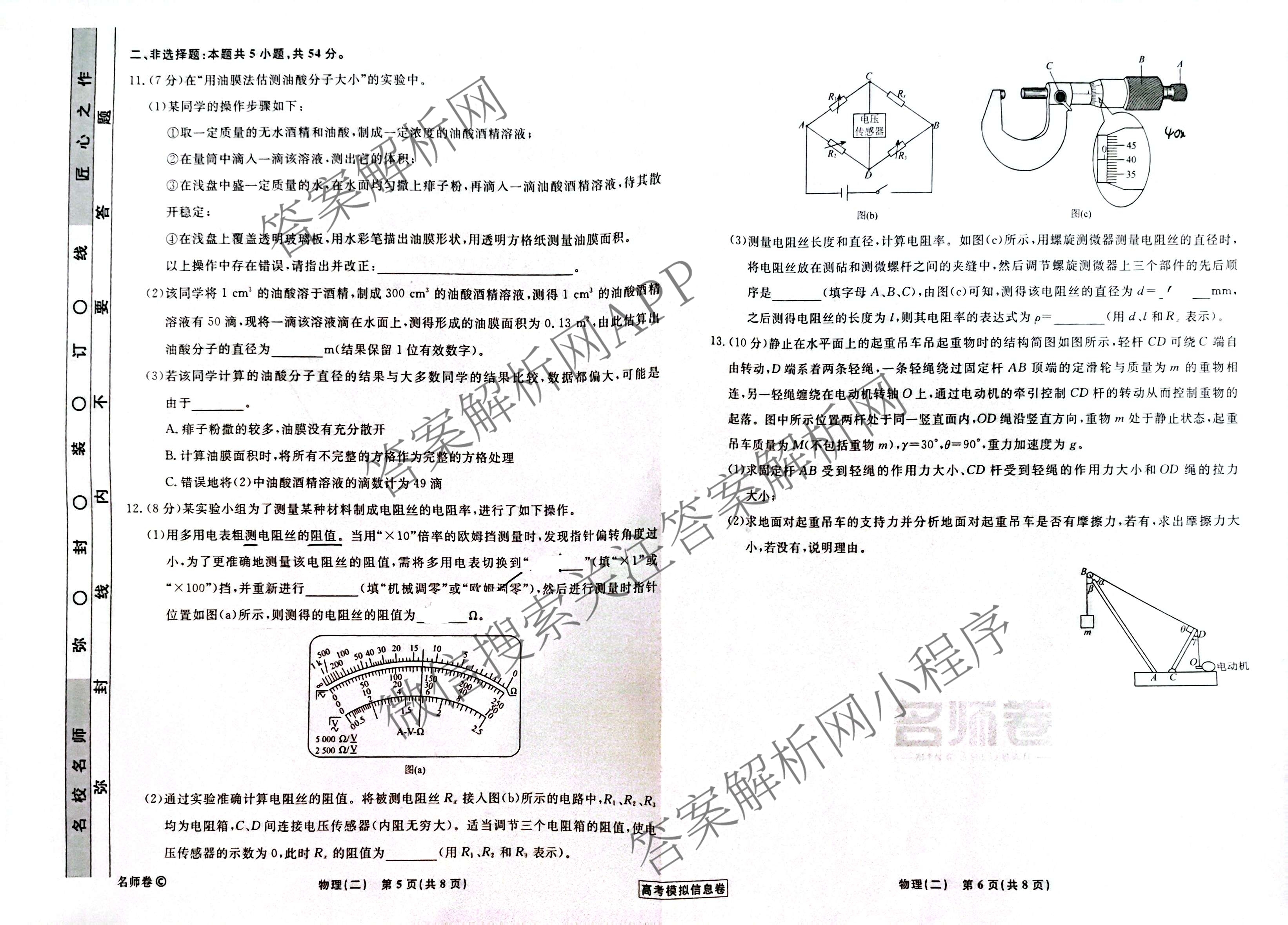 衡水名师卷·高考模拟信息卷2025年普通高等学校招生全国统一考试模拟(二)2物理(空心圆)试题,目前分科卷答案网已经汇总了衡水名师卷·高考模拟信息卷2025年普通高等学校招生全国统一考试模拟(二)2物理(空心圆)试题的各科答案和试卷,获取更多衡水名师卷答案解析,请在关注本站。