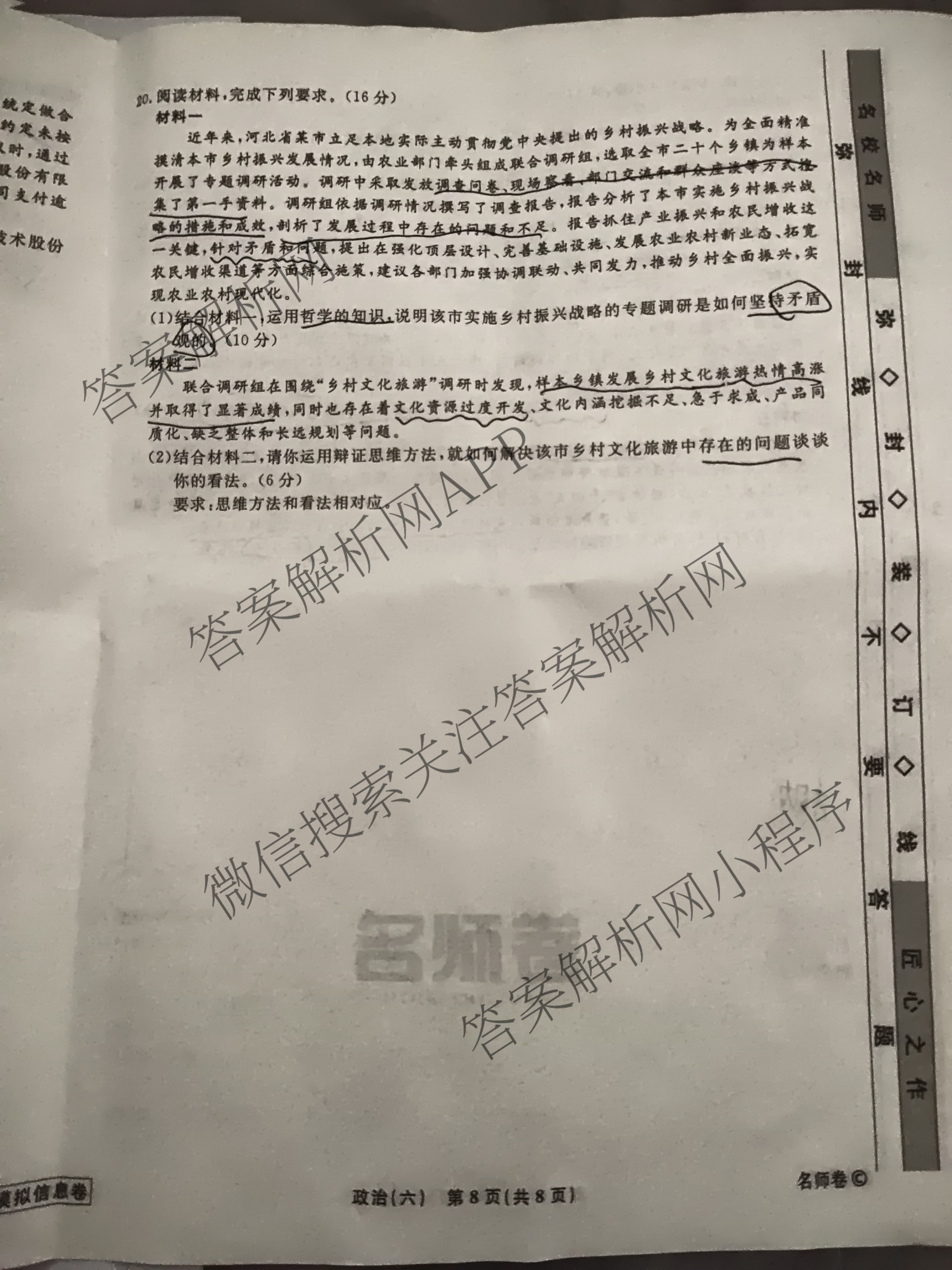 衡水名师卷·高考模拟信息卷·2025年普通高中学业水平选择性考试模拟试题(六)6政治(空心菱形)试题,目前分科卷答案网已经汇总了衡水名师卷·高考模拟信息卷·2025年普通高中学业水平选择性考试模拟试题(六)6政治(空心菱形)试题的各科答案和试卷,获取更多衡水名师卷答案解析,请在关注本站。