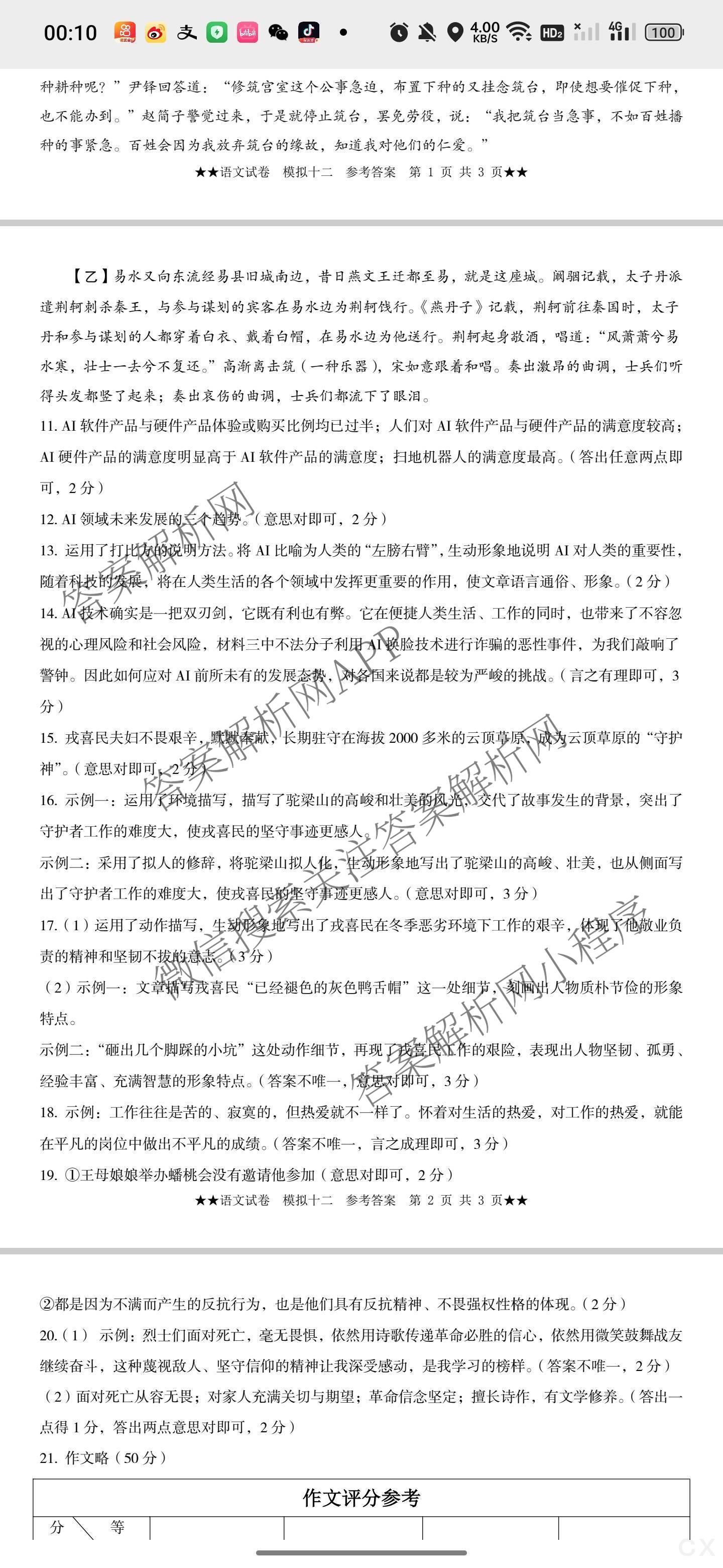 2025年河北省初中学业水平模拟测评(十二)二星语文答案,目前分科卷答案网已经汇总了2025年河北省初中学业水平模拟测评(十二)二星语文答案的各科答案和试卷,获取更多河北省初中学业水平模拟测评答案解析,请在关注本站。
