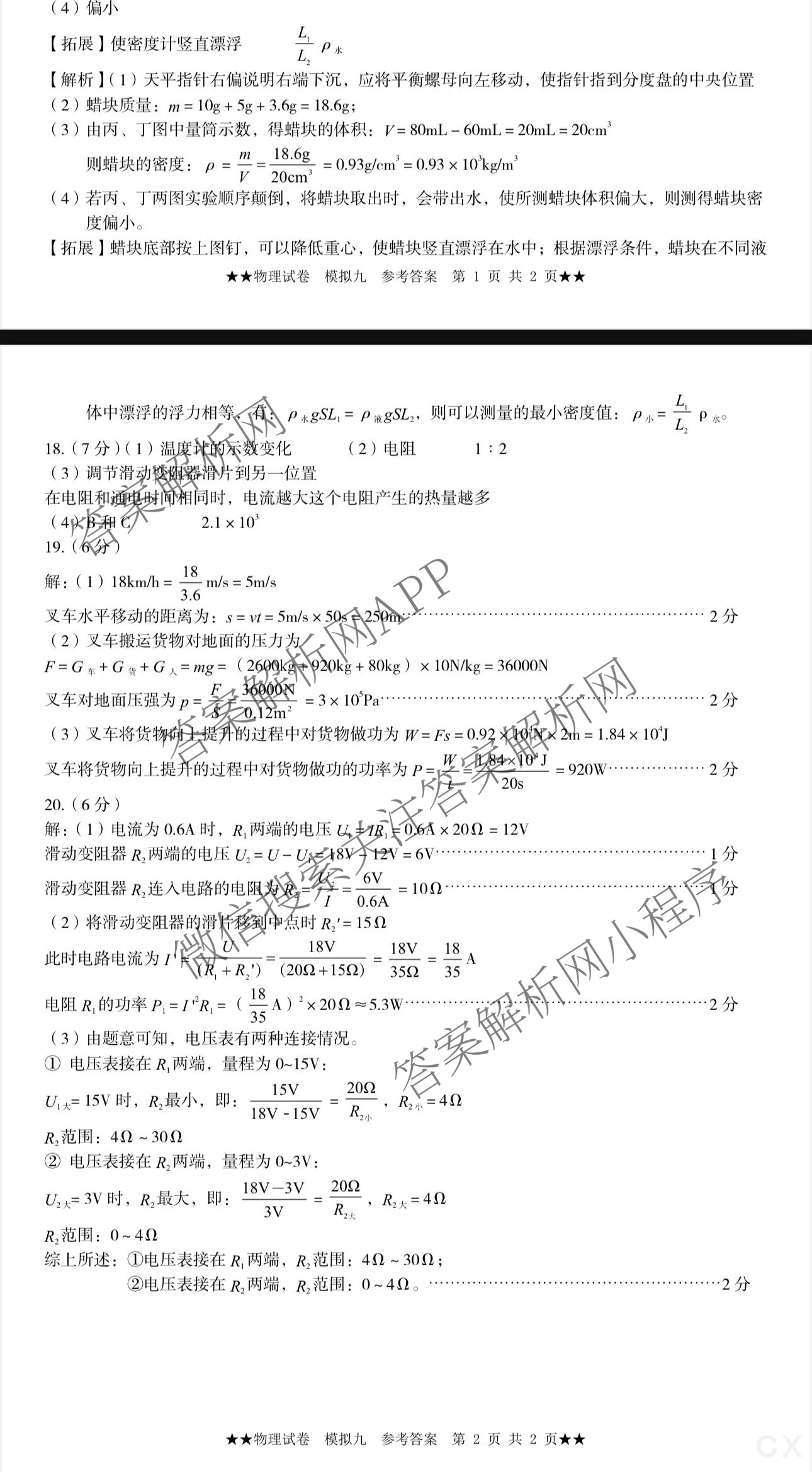 - 2025年[河北省初中学业水平模拟测评](九)二星物理答案