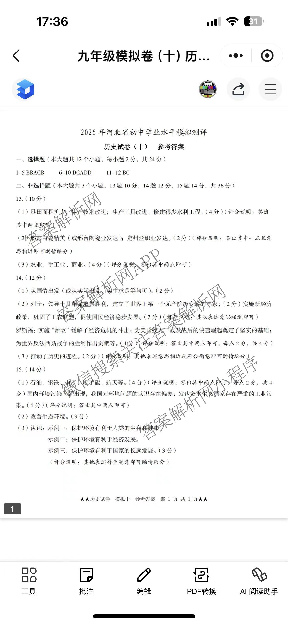 2025年(河北省初中学业水平模拟测评)(十)二星历史答案